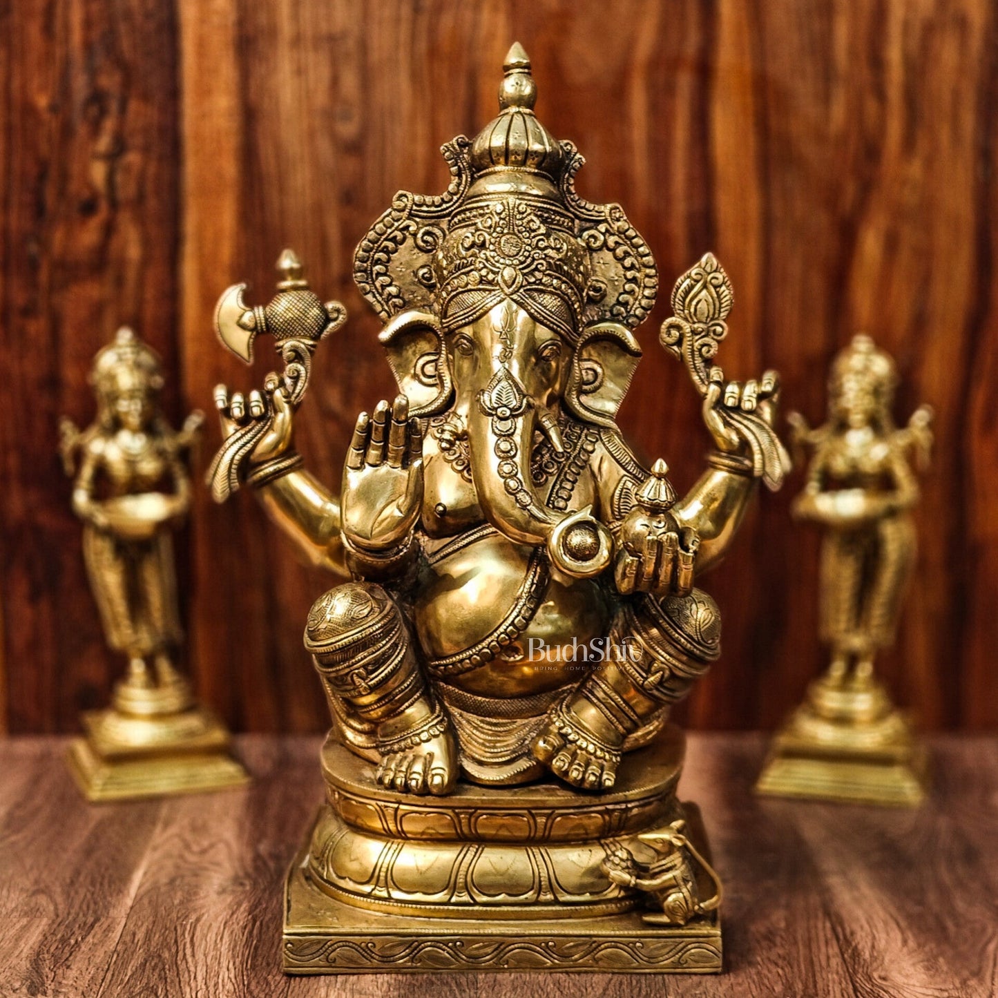 Enhance your sacred space with the Very Unique and Magnificent Handcrafted Brass Ganapati Statue. This exquisite statue showcases Lord Ganapati intricately handcrafted from fine brass, exuding a majestic presence with its 24-inch height. With its weight of approximately 30 kgs, this statue guarantees durability and stability.