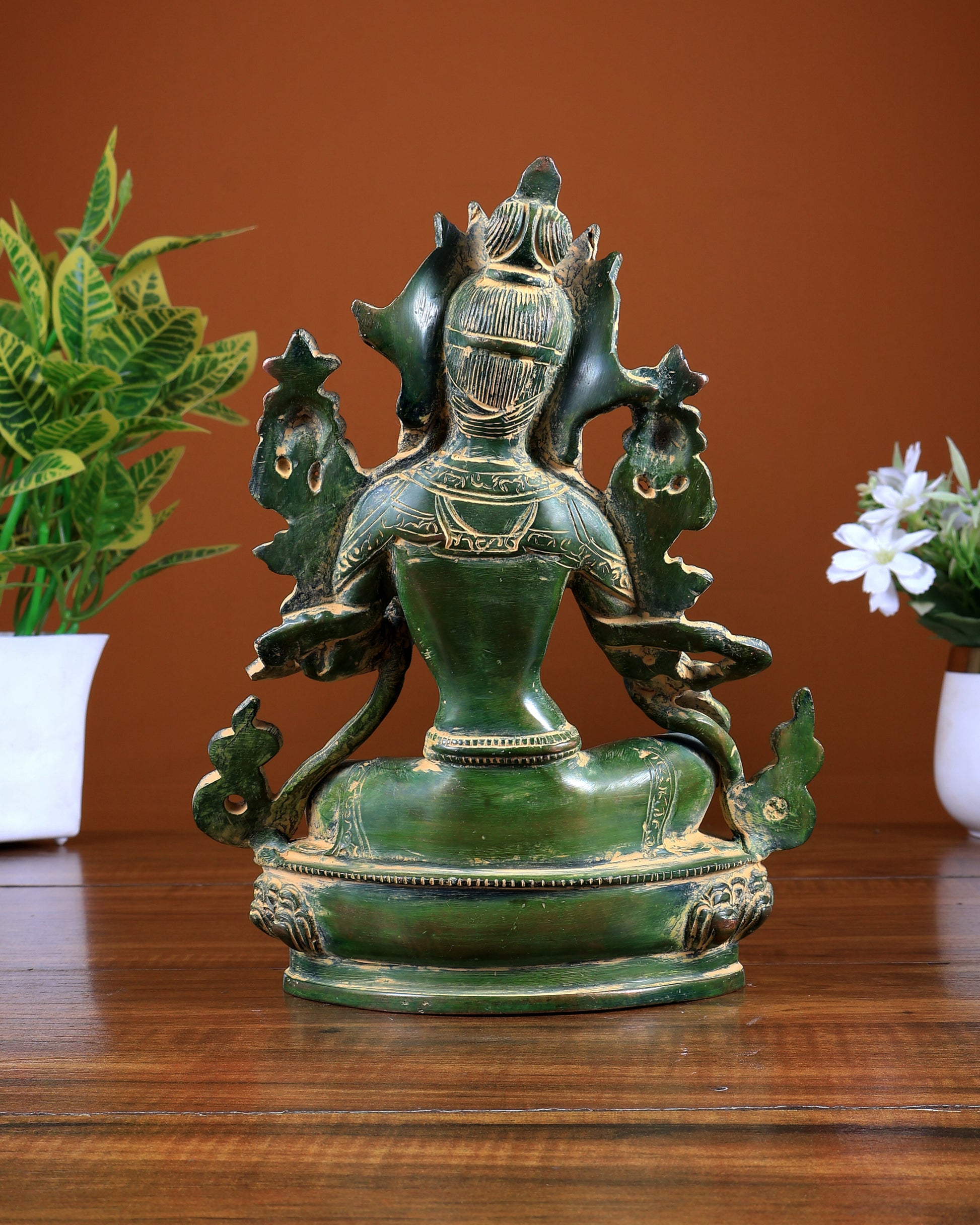 Brass Green Tara Statue – Green Sand Finish 9 inch