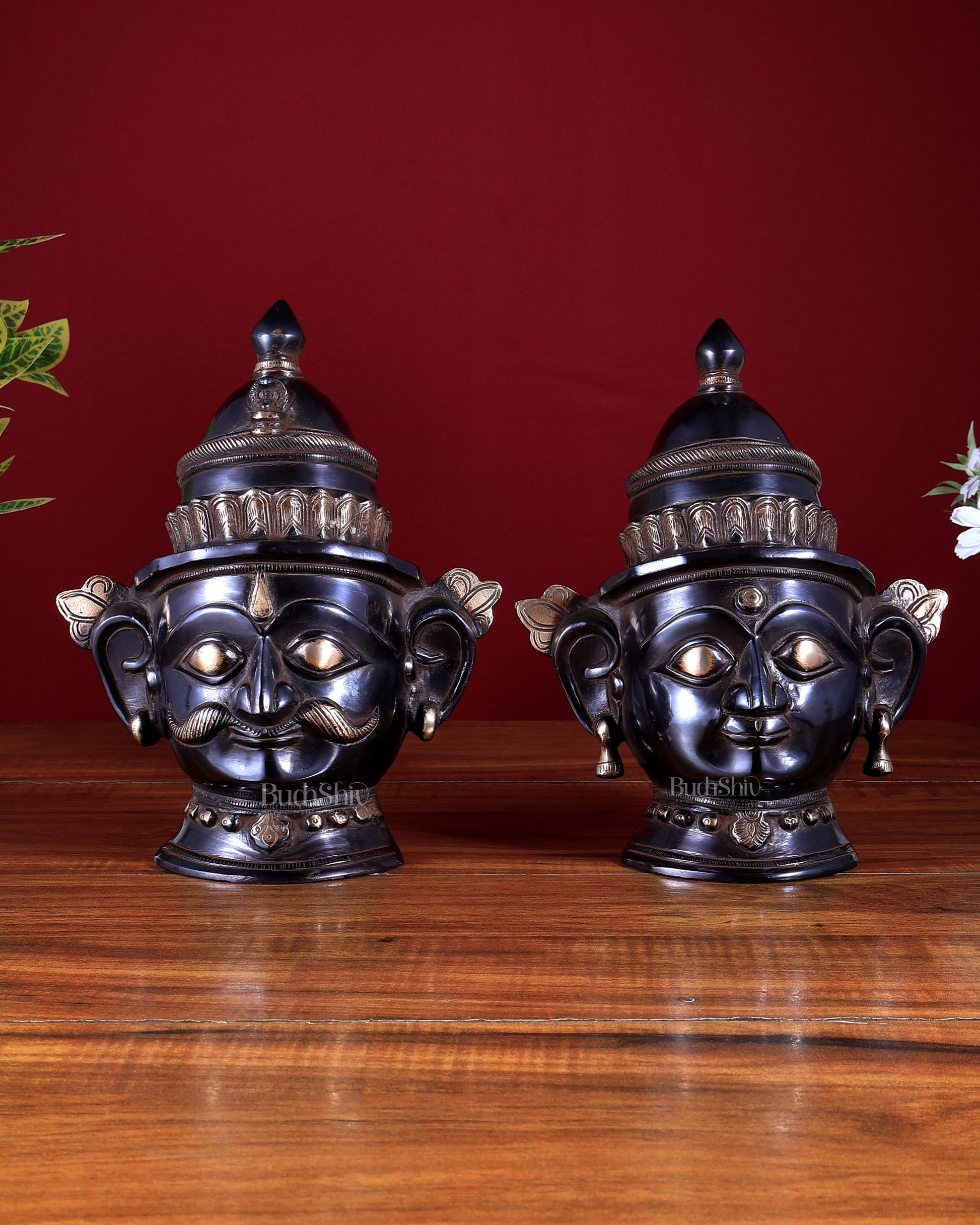Meticulously crafted in brass in black finish with fine detailing, these Mukhalingams are ideal for home temples, meditation spaces, and ritual worship, radiating divine grace and spiritual elegance.