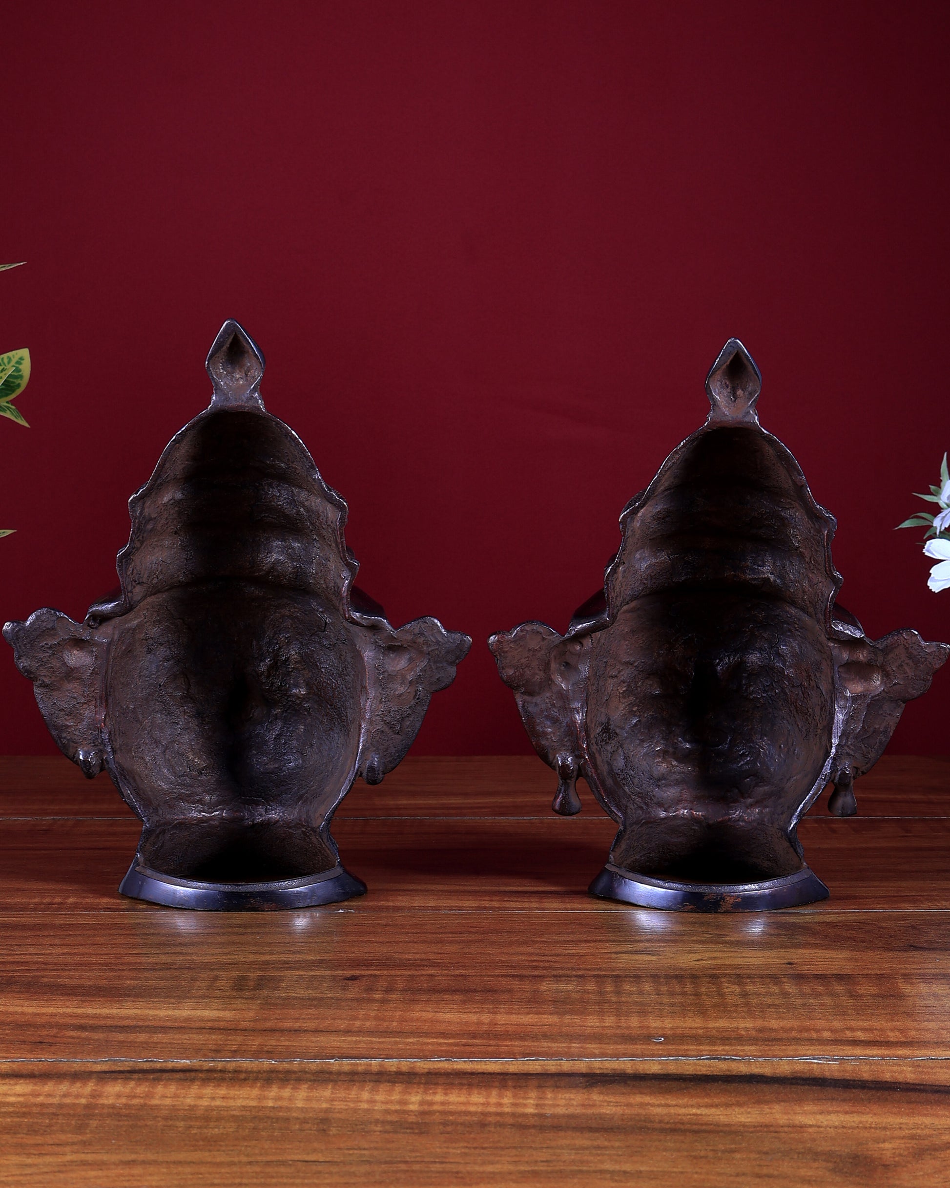 A beautiful blend of devotion, craftsmanship, and antique charm, these Shiva–Gauri Mukhalingams are timeless spiritual treasures that enhance the sanctity and grace of any sacred space.