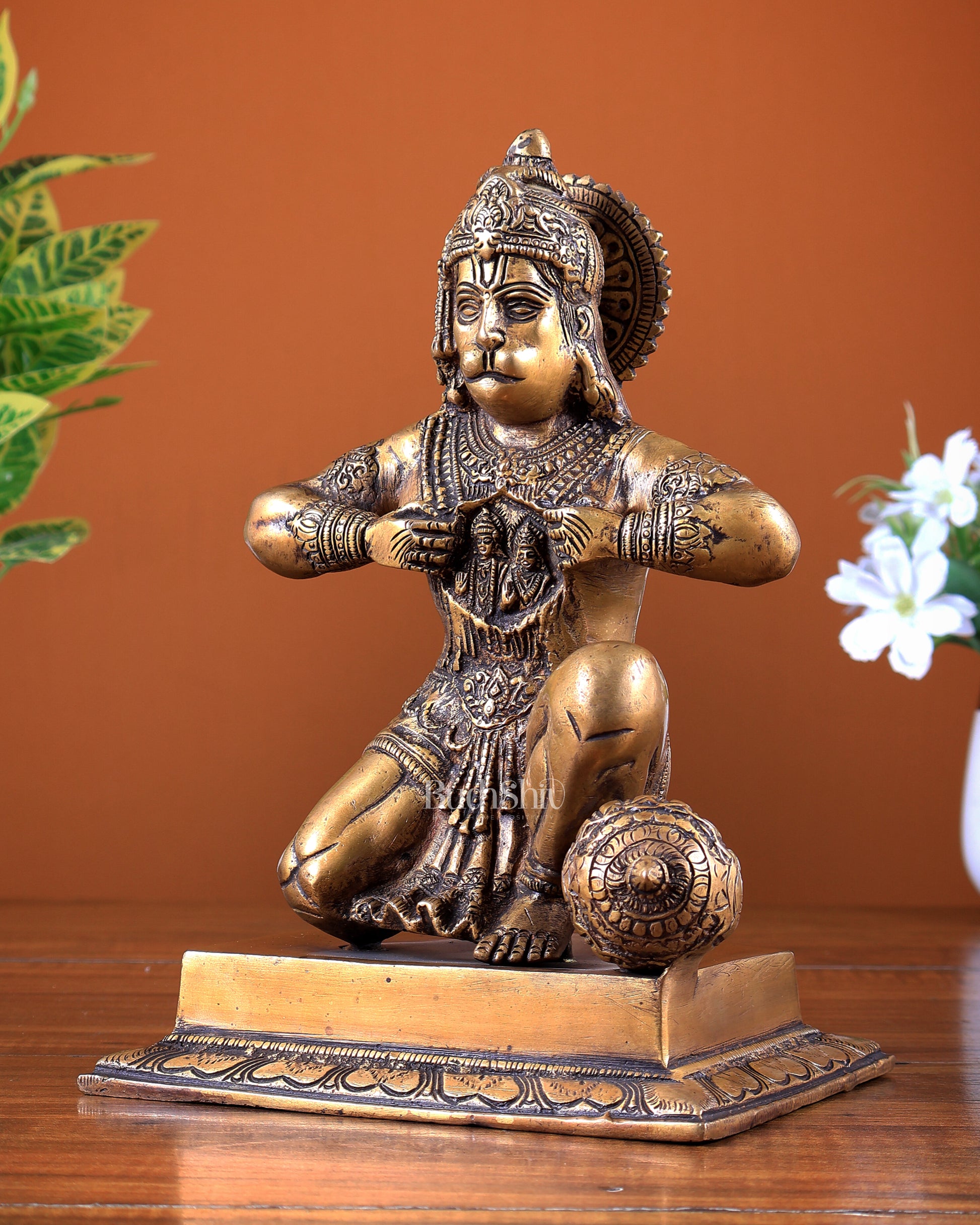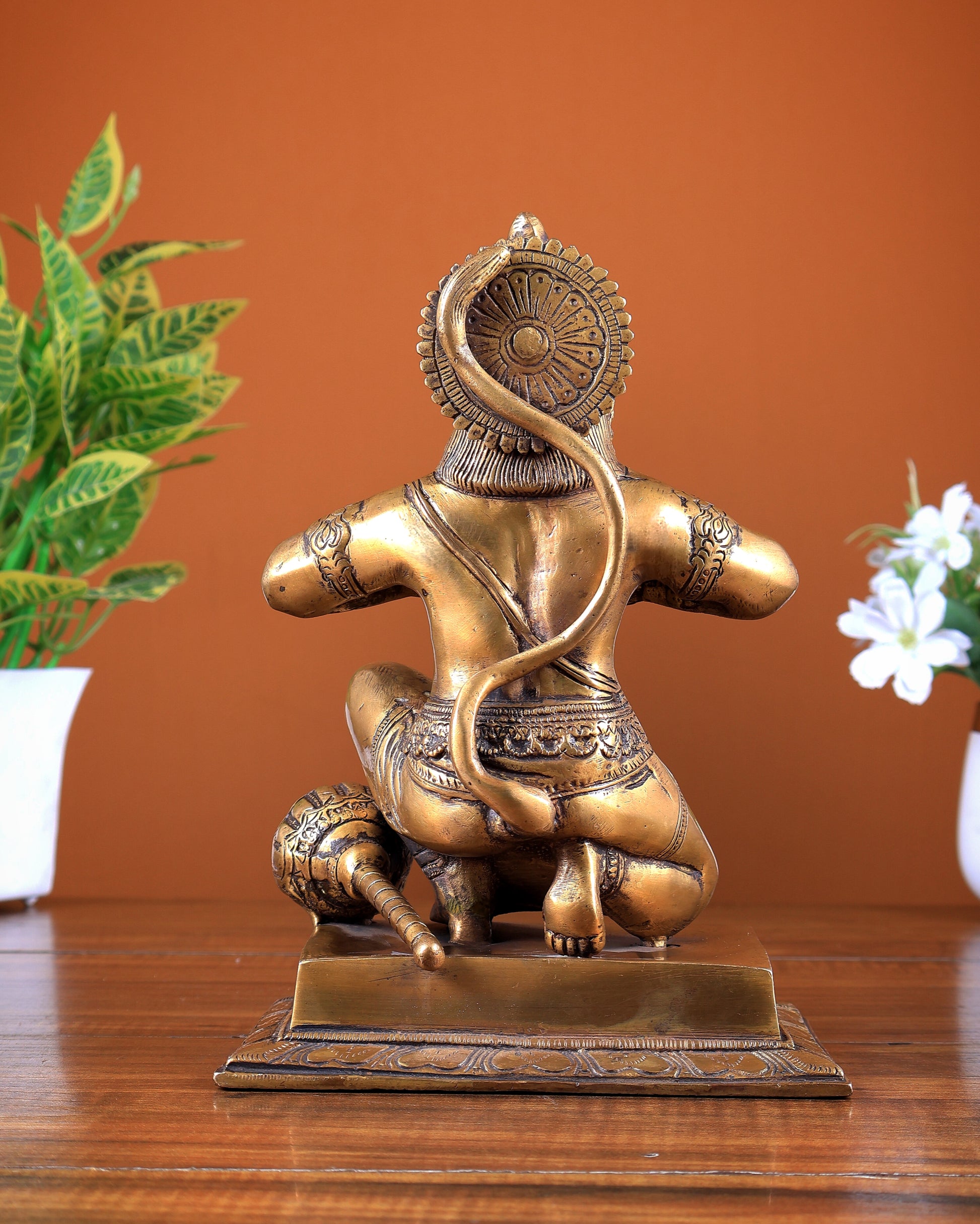 This Brass Hanuman Ji Statue powerfully depicts Bajrangbali tearing open his chest to reveal Lord Rama and Goddess Sita, symbolizing the highest form of devotion, surrender, and unwavering faith. This iconic representation reflects Hanuman’s eternal bhakti and selfless service.