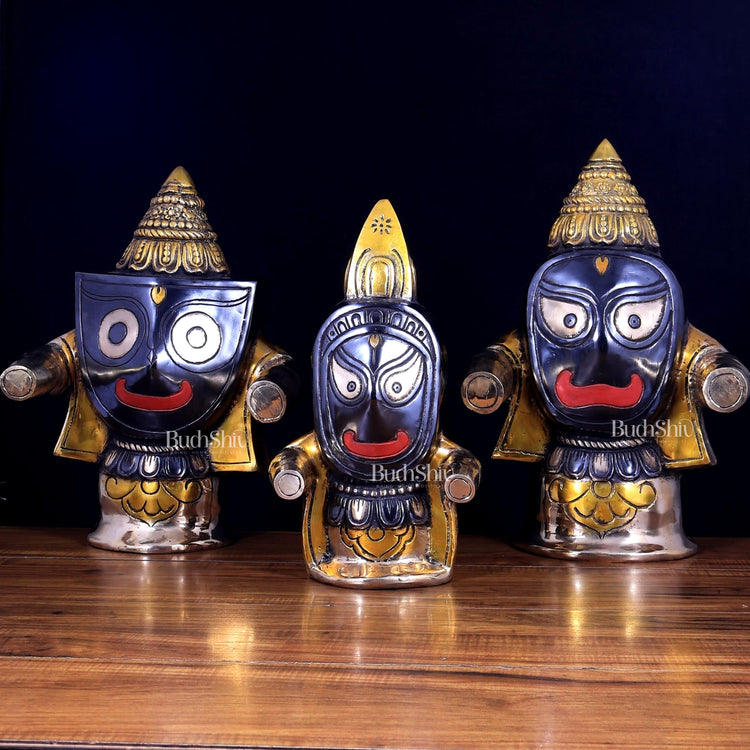 Brass Jagannath Puri Idol Set of Three (Temple Deities) 18 inch