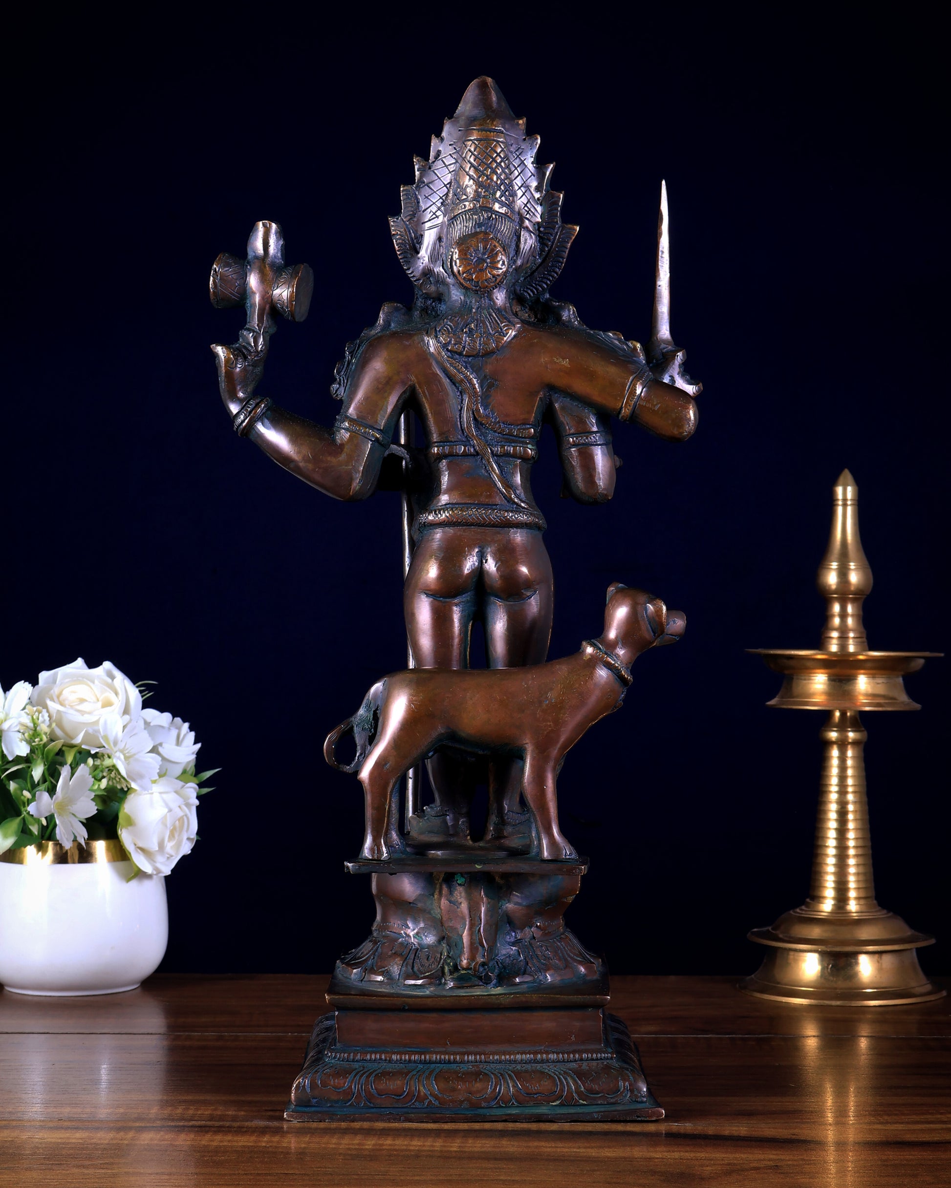 Brass Kaal Bhairava Statue with dog antique bronze finish 18 inch