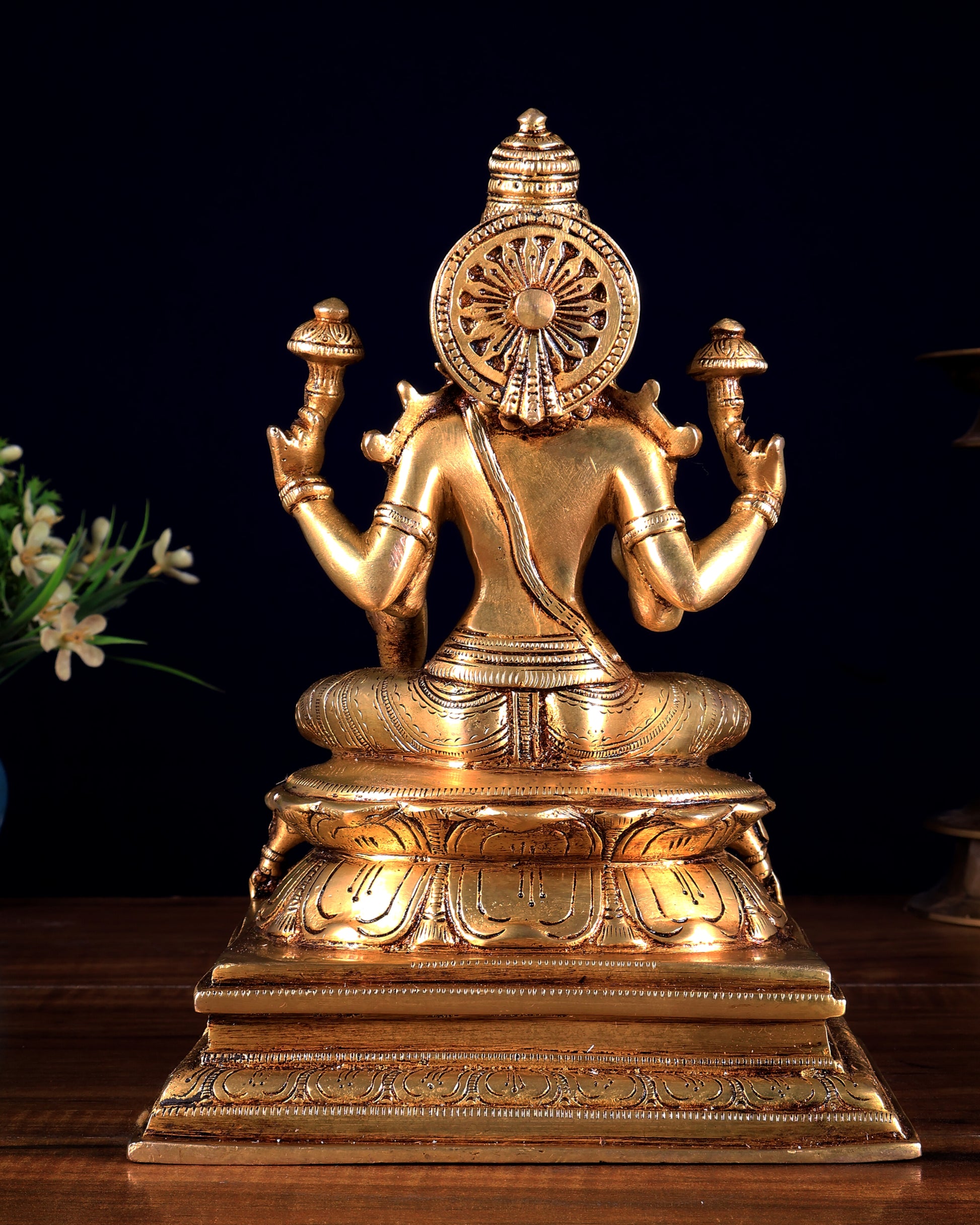 A timeless brass Lakshmi murti that blends traditional craftsmanship with spiritual significance, making it a powerful and elegant addition to any sacred space.