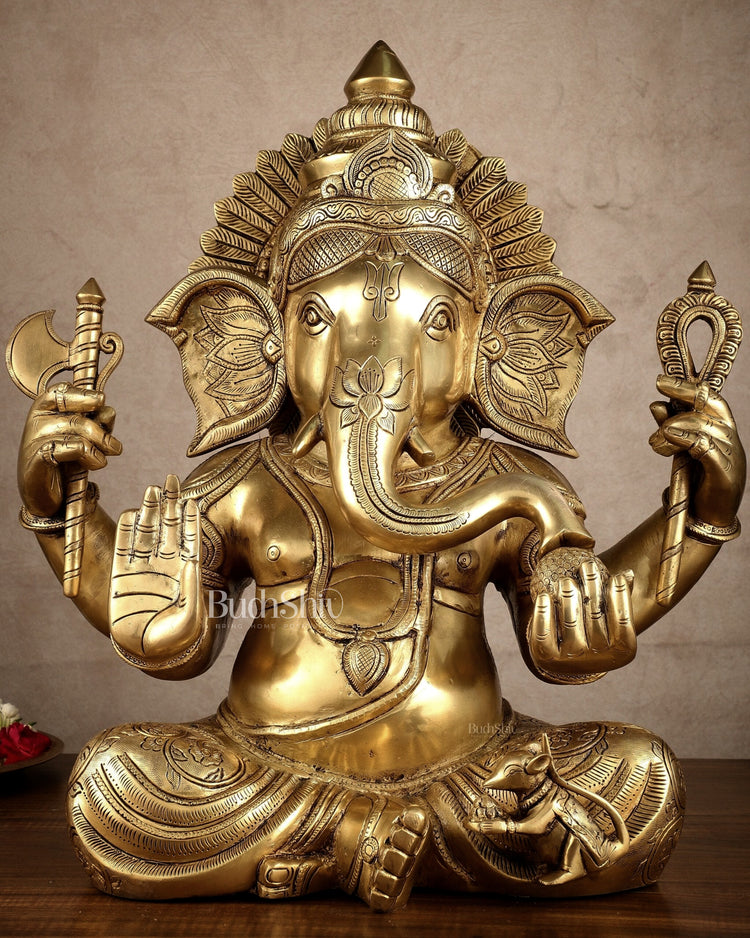 Brass Large Ganesha Statue | 20x16.5x11 Inches | 31.25 KG
