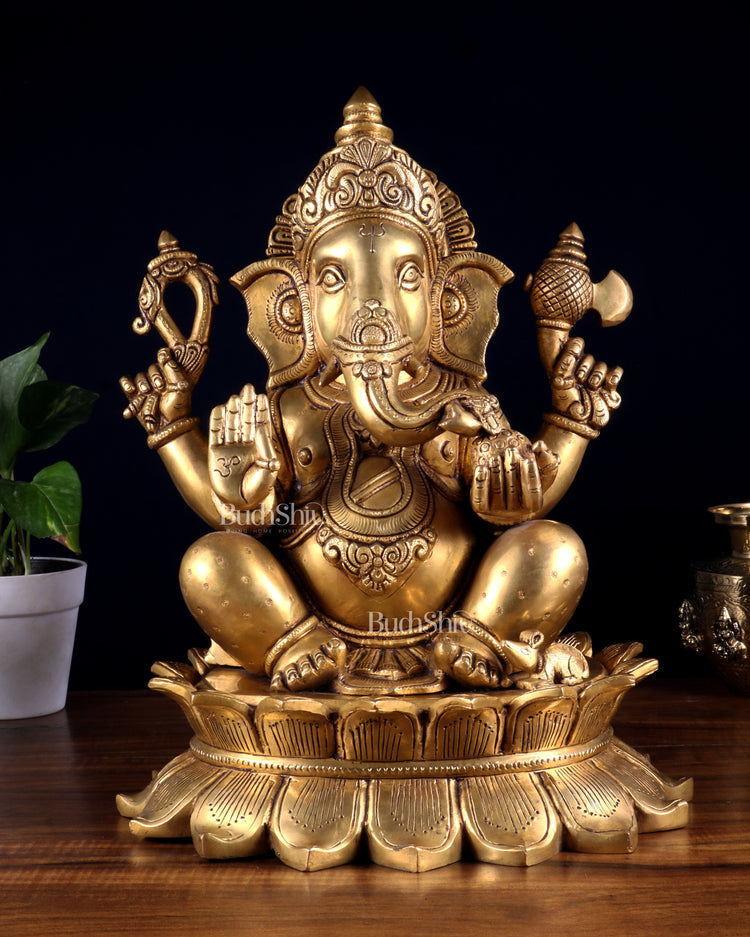Brass Lord Ganesha Statue on Lotus Base 14 inch