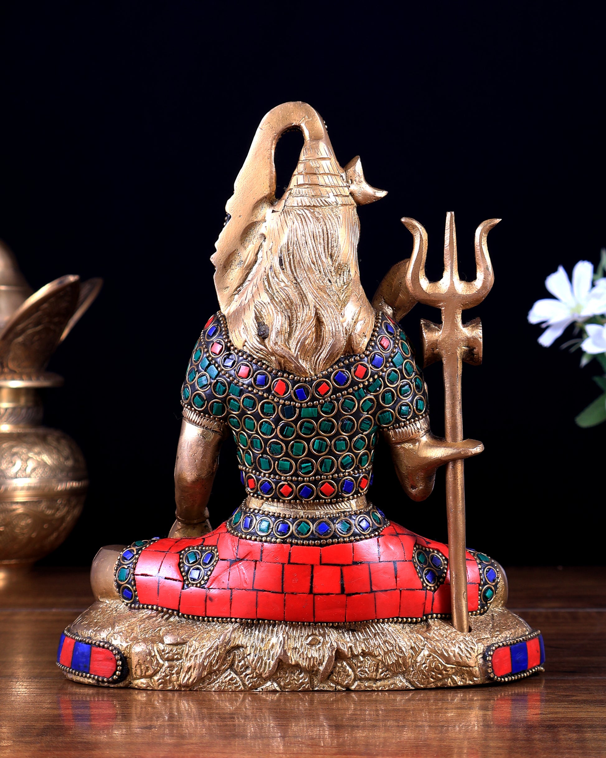 Brass Lord Shiva in Blessing Mudra with Stonework – 8 inch