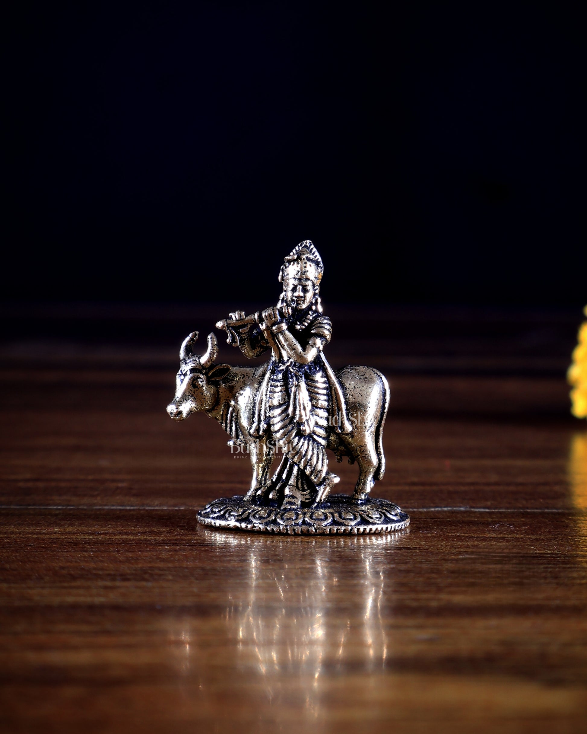 Brass Miniature Krishna with Cow Idol | Superfine Small Murti | 1.4 Inch