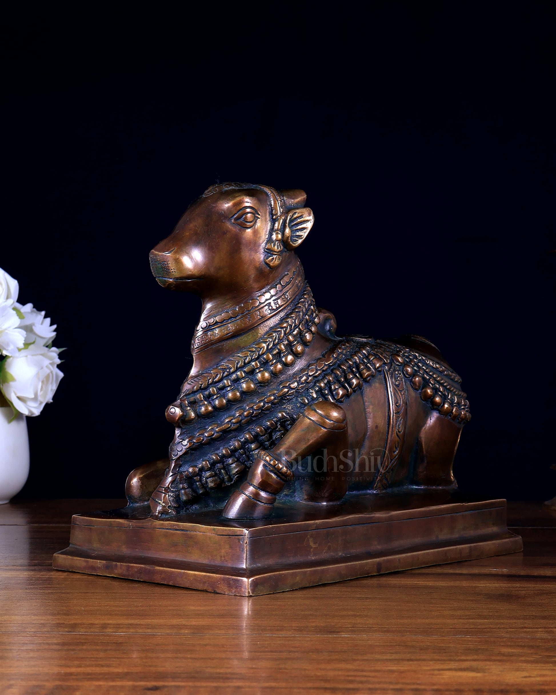 Brass Nandi Statue – Brown Tone Finish | Sacred Seated Nandi on Ornate Base