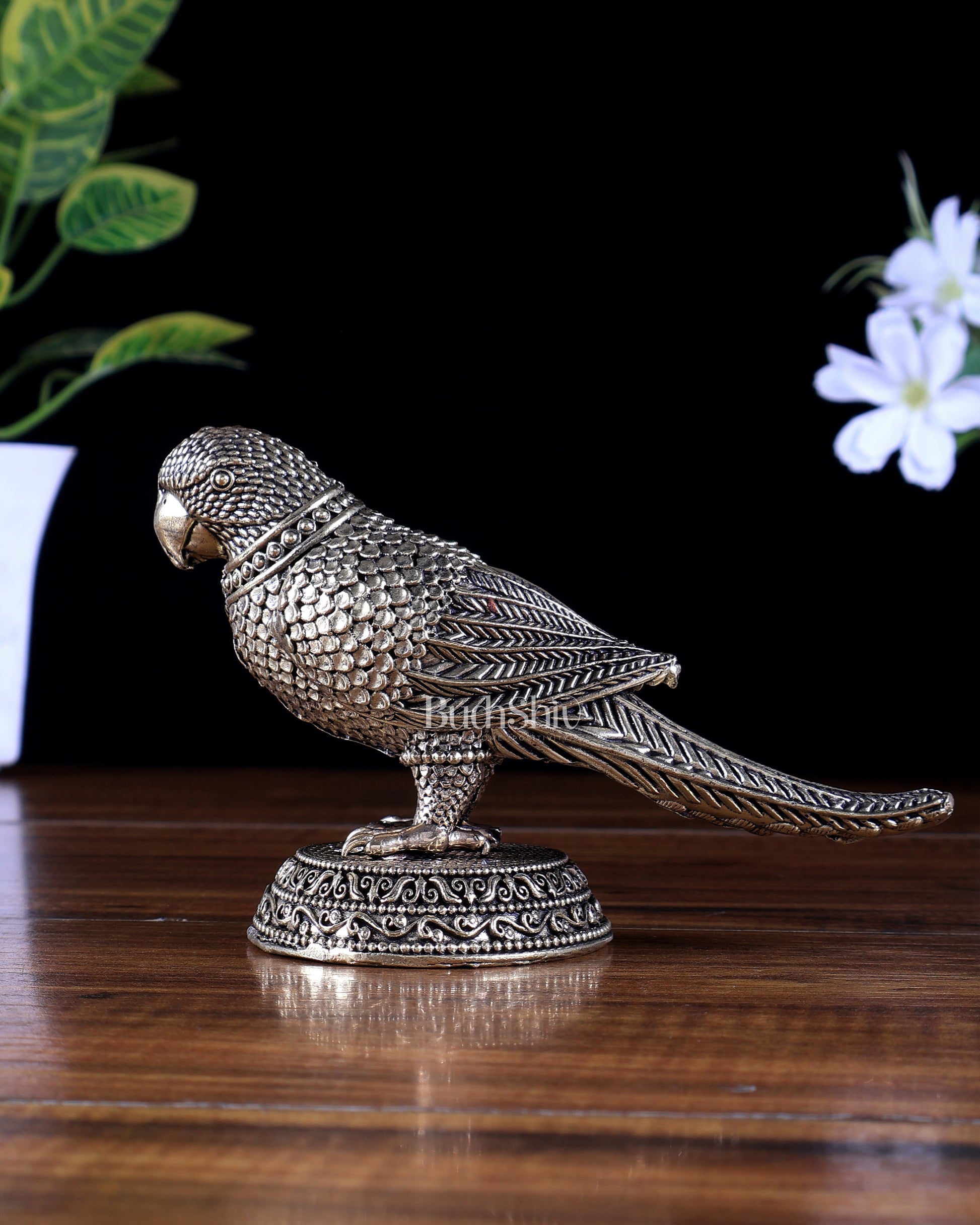 Brass Parrot Showpiece Decor | Superfine Mini Statue 6.5 inch wide