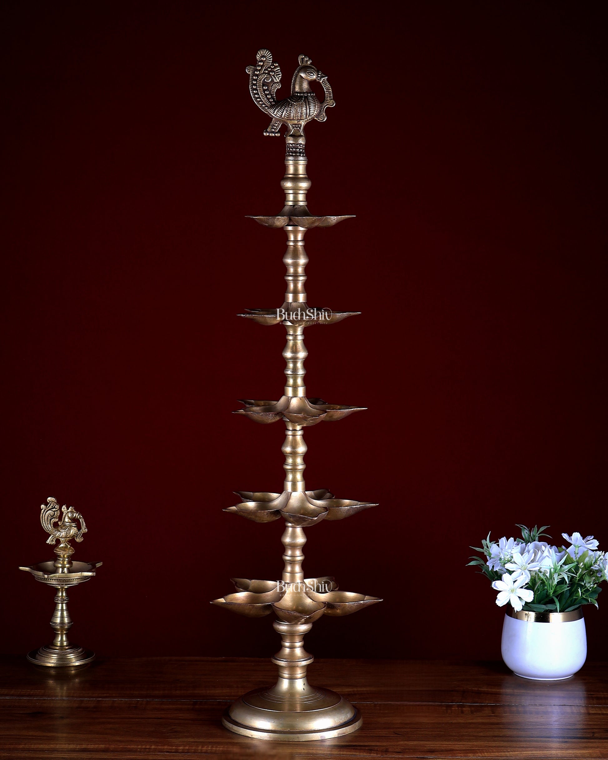 Brass Peacock Annam Pakshi Lamp Diya | Multi-Tier | Antique Gold | inauguration lamp 29 inch