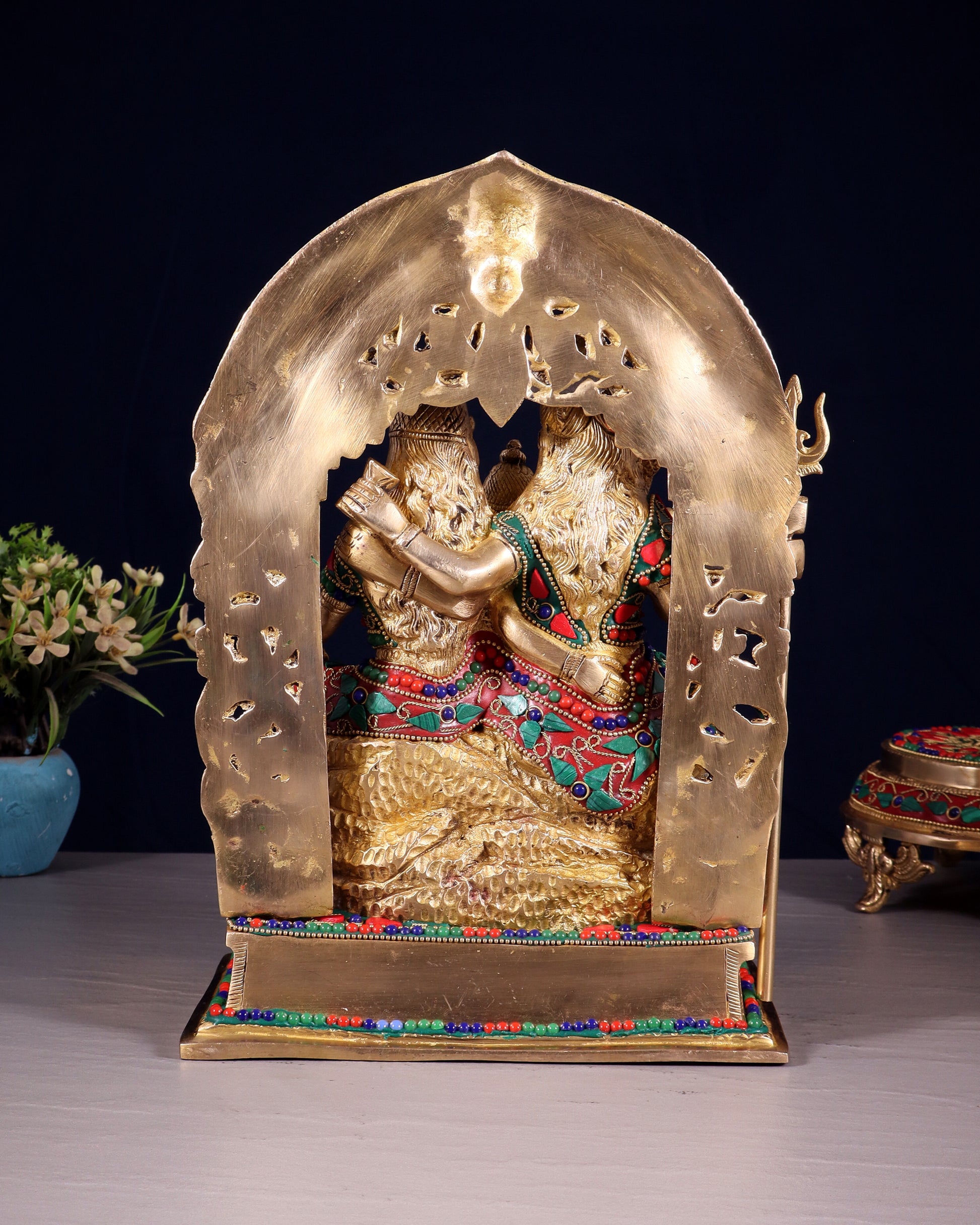 Brass Shiv Parivar Idol - Floral stonework - 12" Height