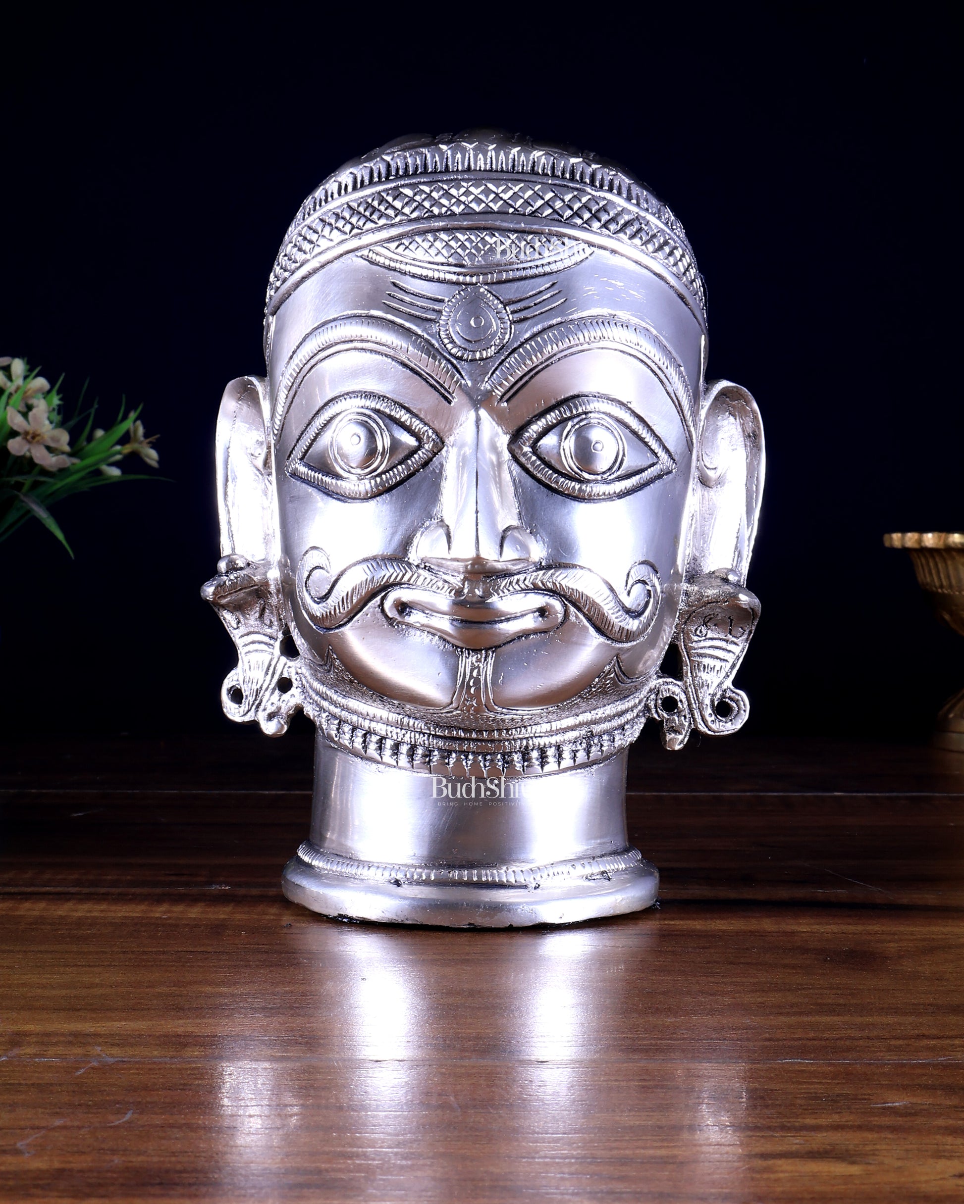Brass lord Shiva Mukhalingam as Mahakal Face/bust/head statue idol with silver plating