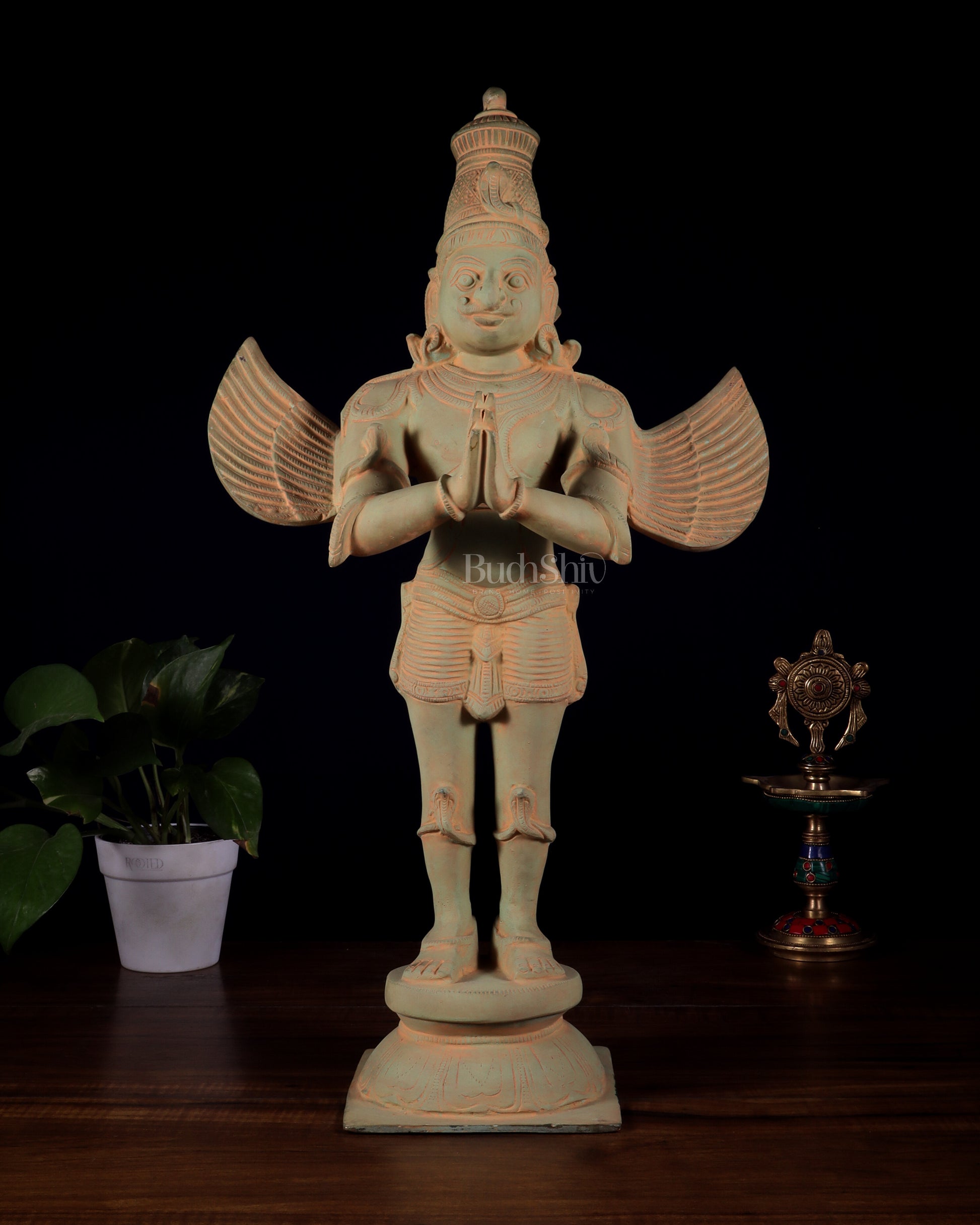 Brass Standing Garuda Dev Statue - 22 Inch Green sand patina