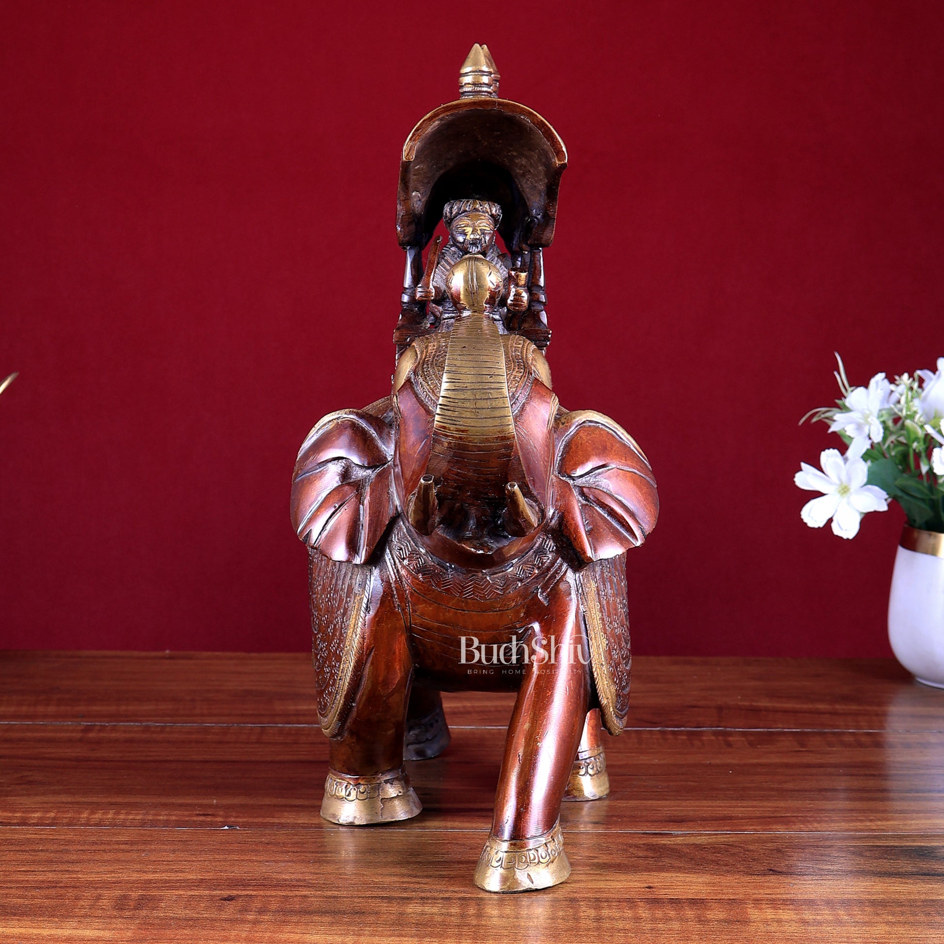 Pure Brass Ambari the elephant Statue. Beautiful Antique Brown and golden Duel tone finish.