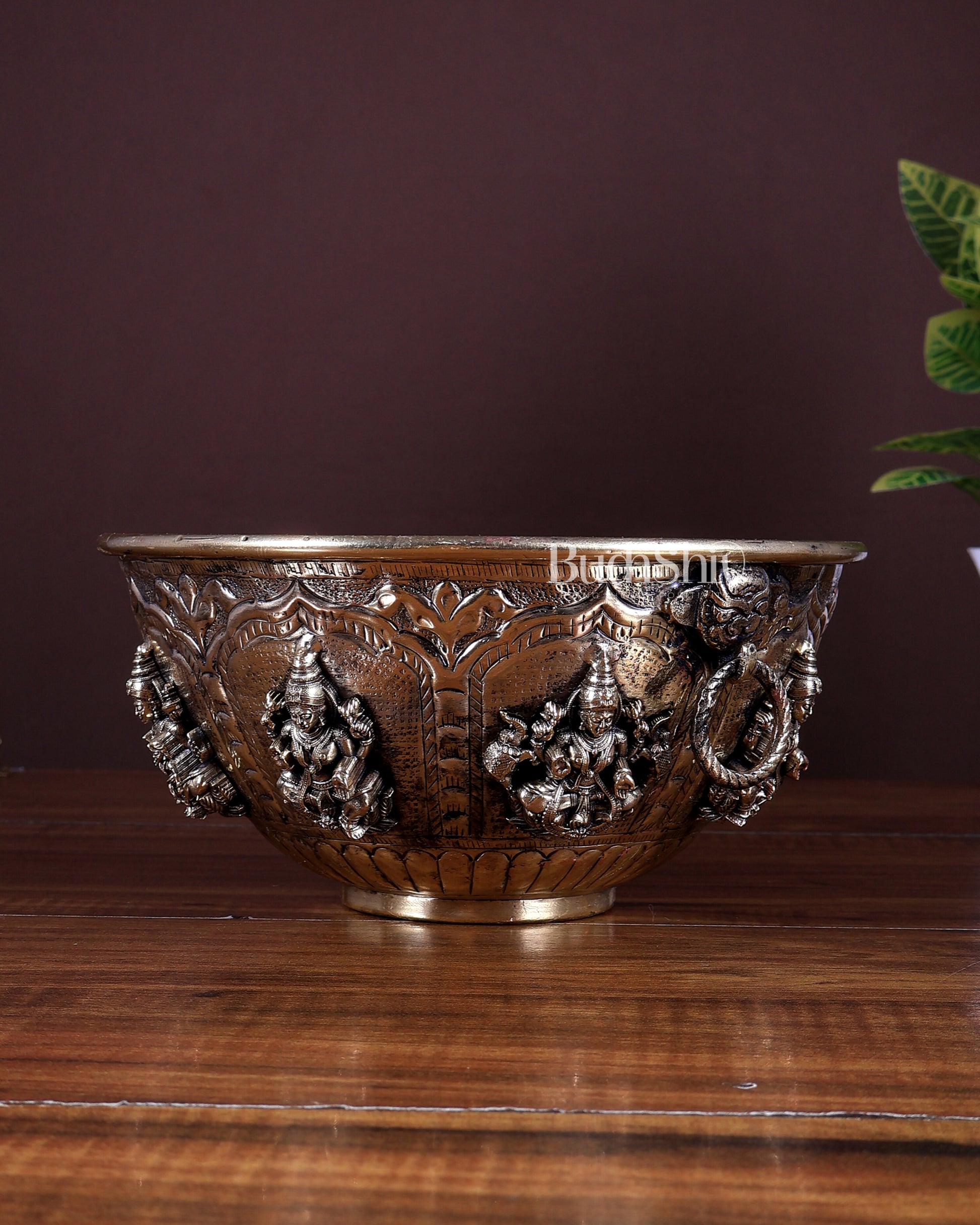 Brass Superfine Ashtalakshmi Bowl | Sacred Pooja Ritual Bowl (8 Inch)