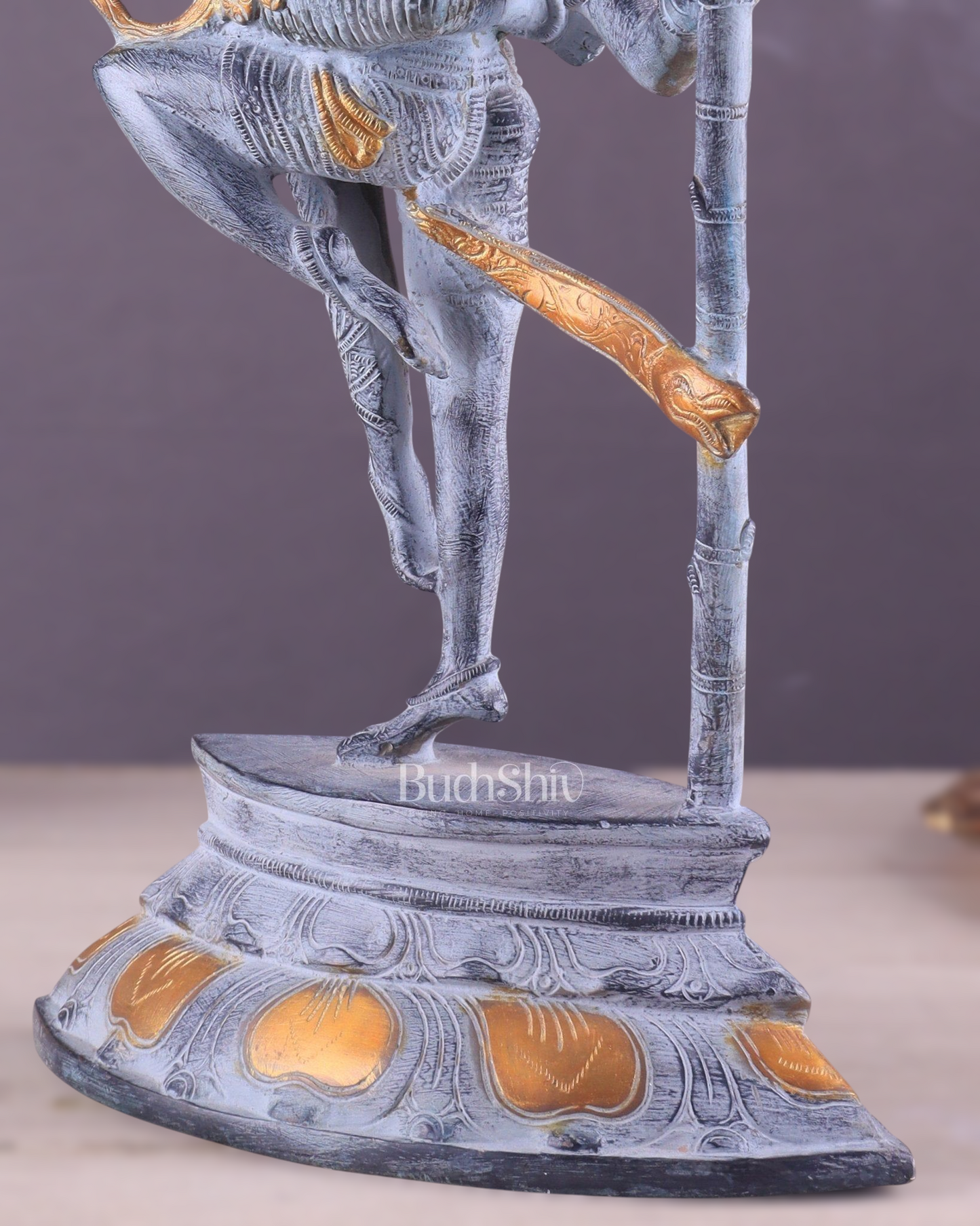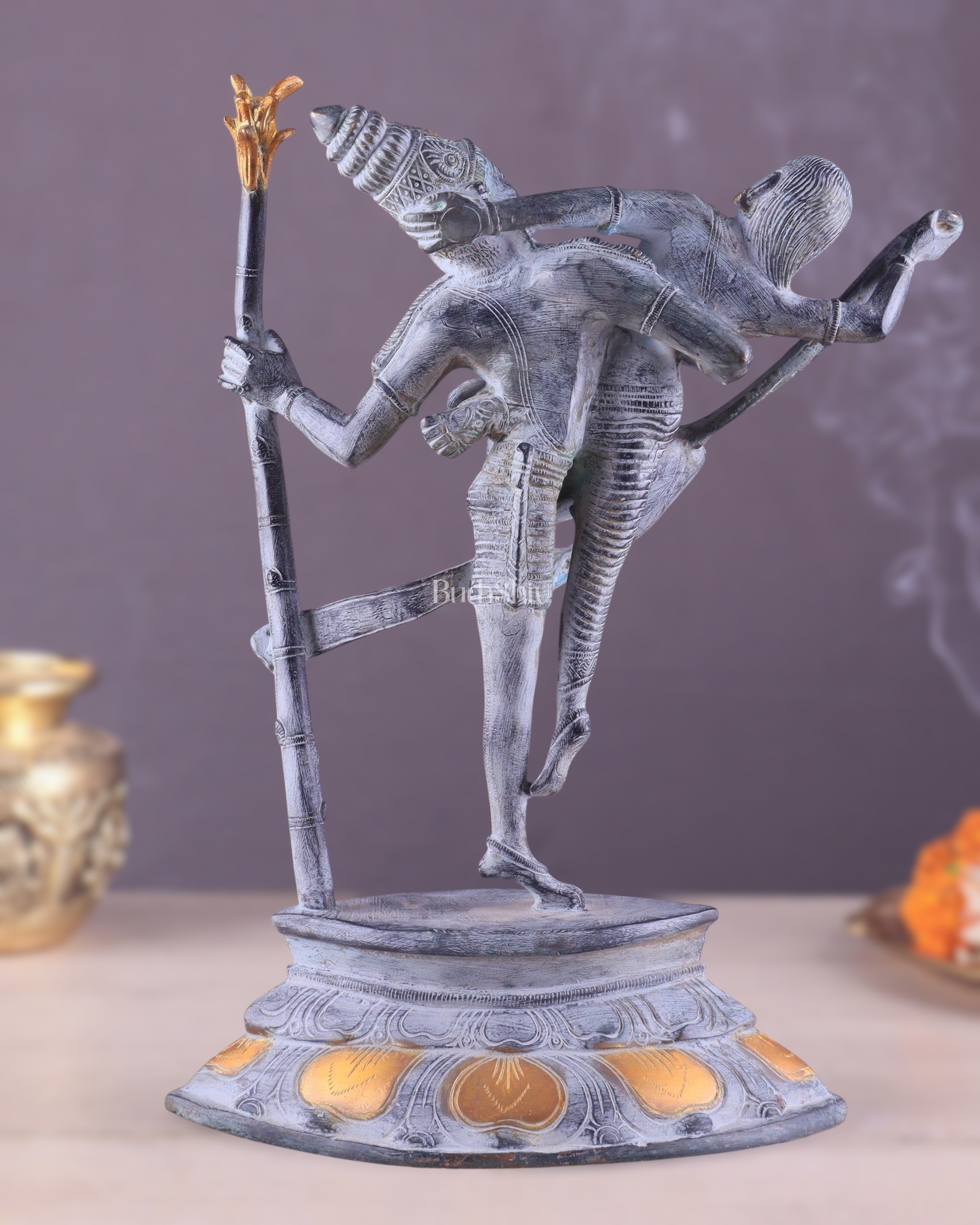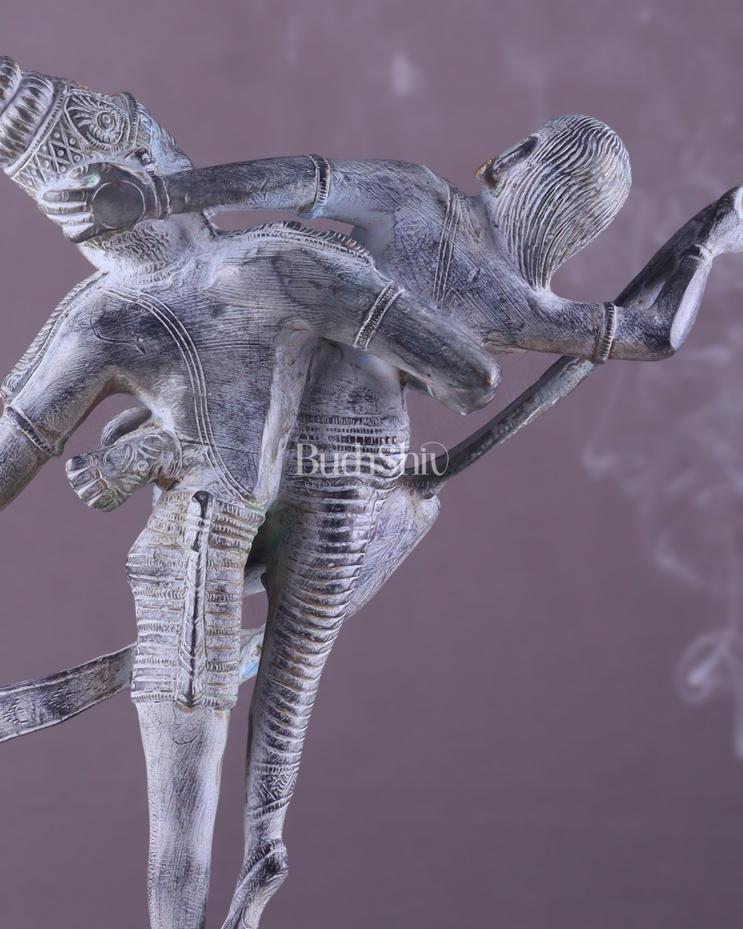 Experience the eternal dance of love and desire with our exquisitely crafted Brass Superfine Dancing Rati and Kamadeva Statue. Standing gracefully at 13 inches in height, with a width of 10 inches and a depth of 4 inches, this intricately crafted statue weighs 6 kgs. Vintage grey sandstone finish.