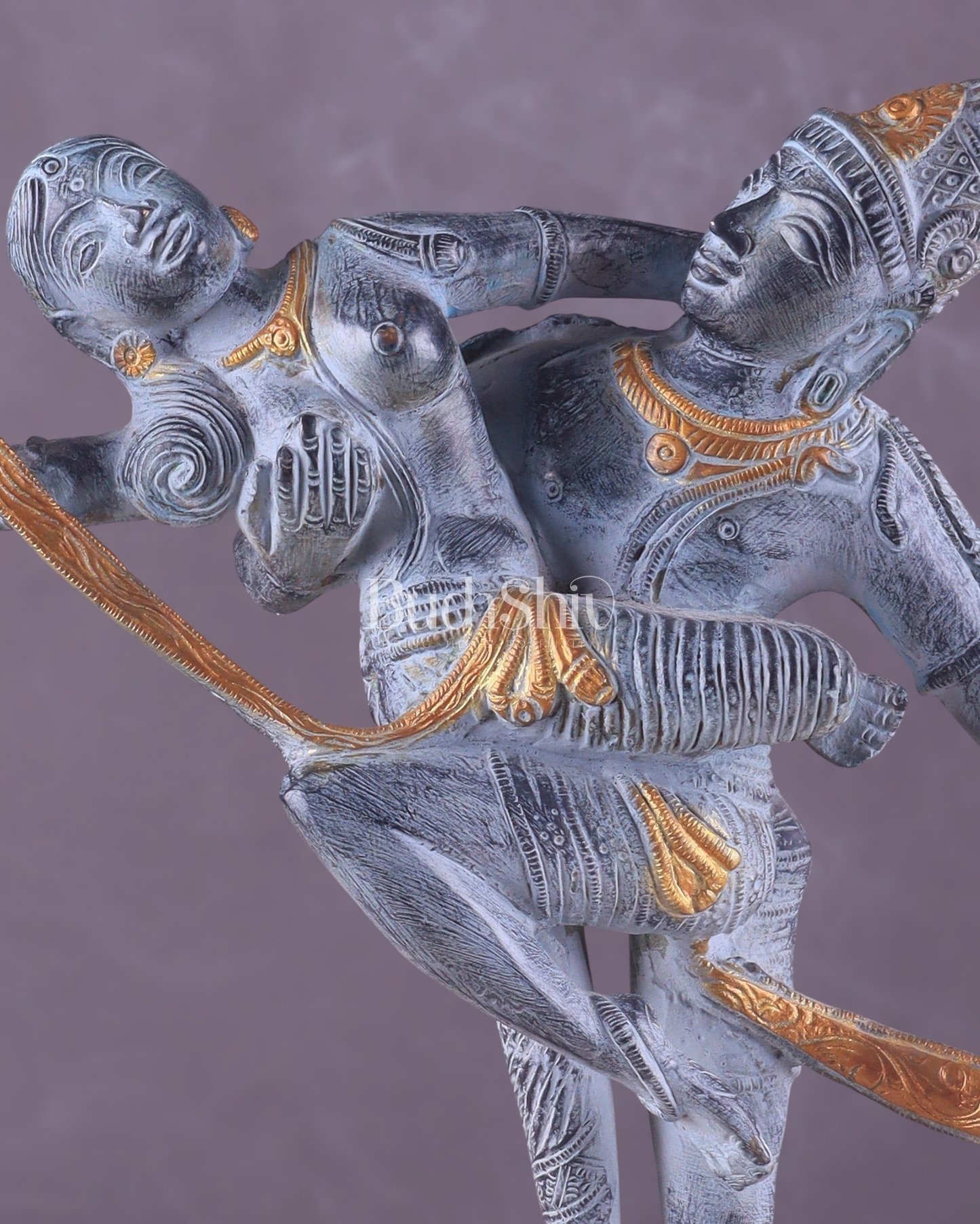 Brass Superfine Dancing Rati and Kaamdeva 13 inch grey sandstone finish