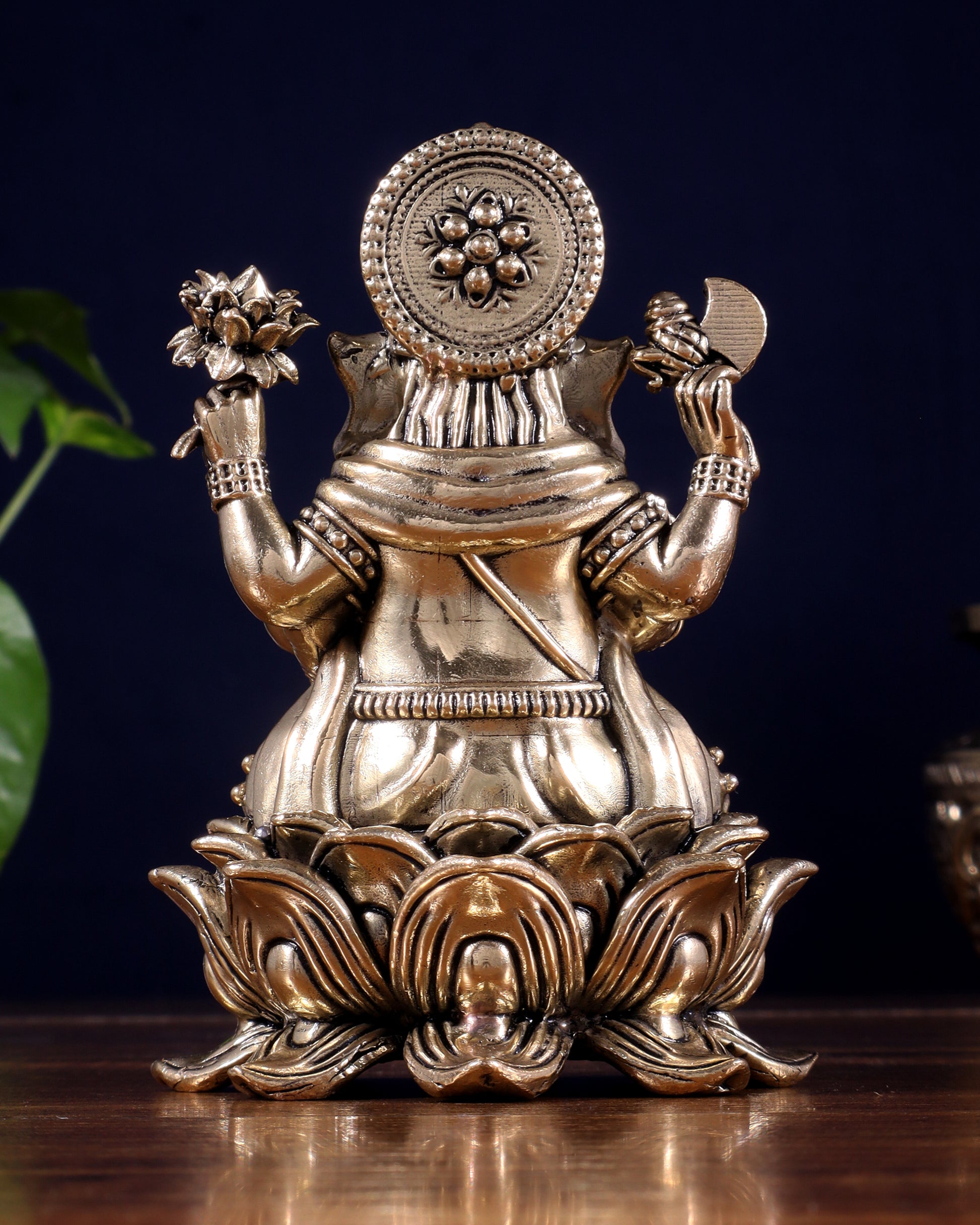 Brass Superfine Ganesha Idol on Lotus Base 5"