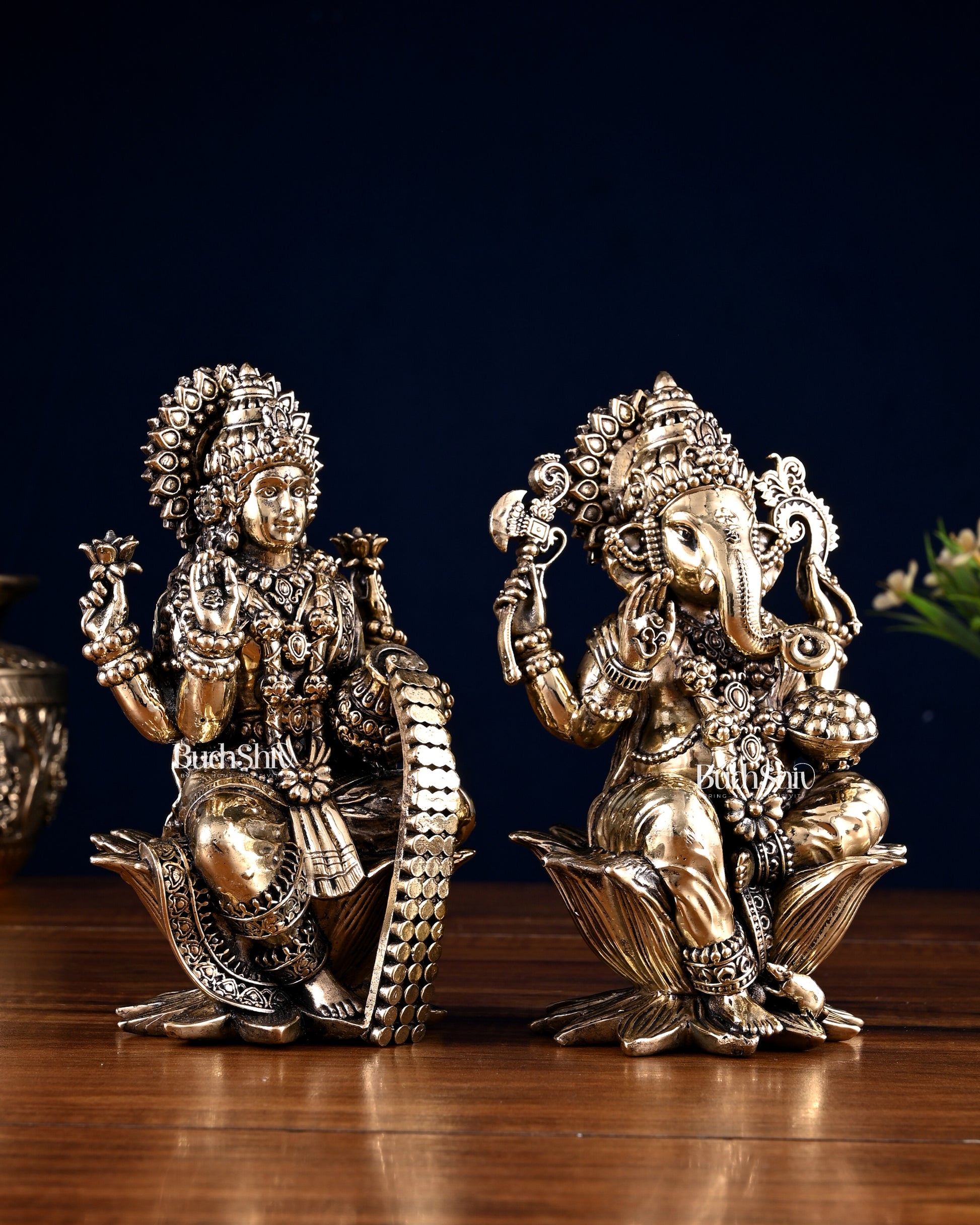 Brass Superfine Ganesha Lakshmi Idol Pair – 7 Inch