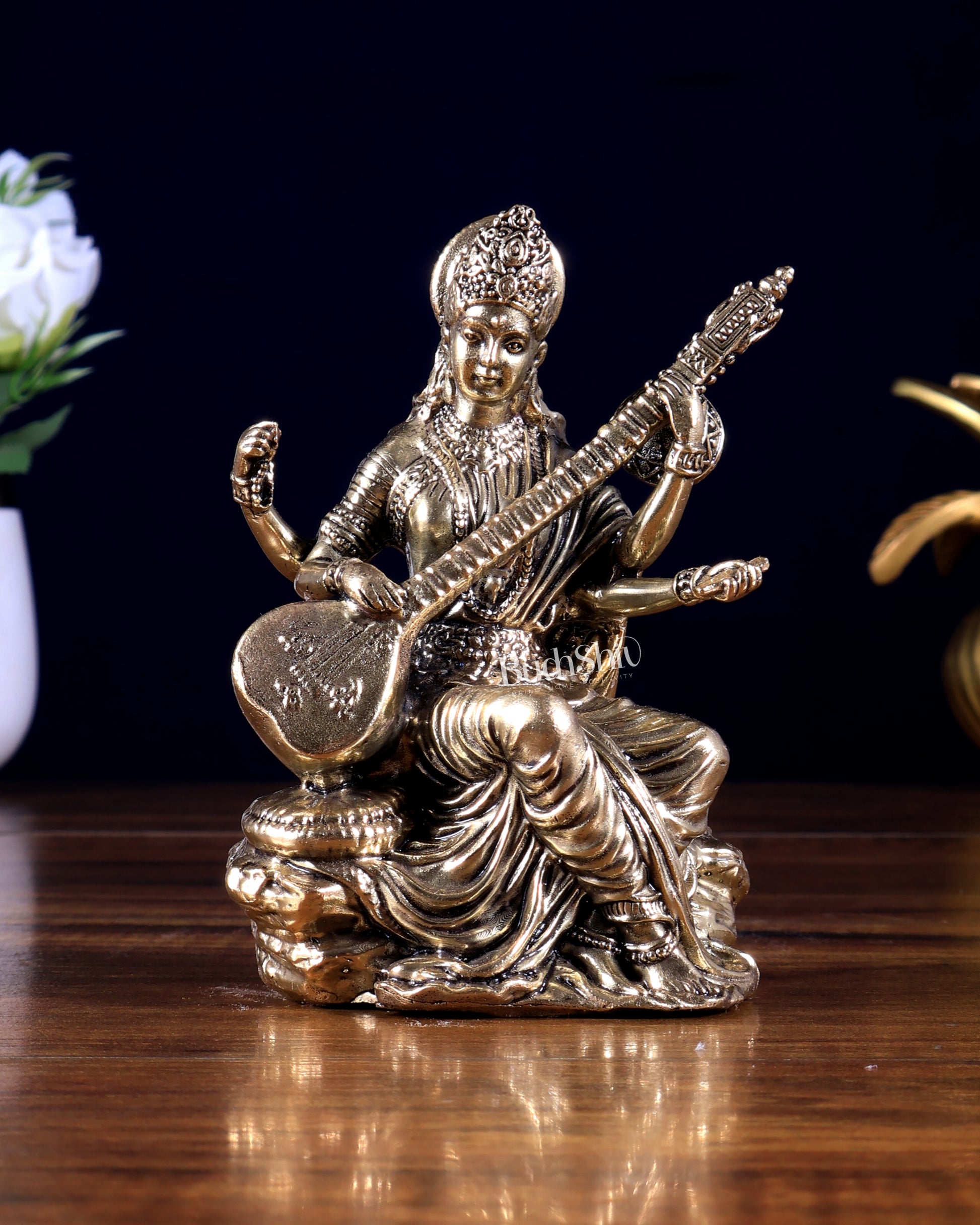 Brass Superfine Goddess Saraswati Idol 5 inch