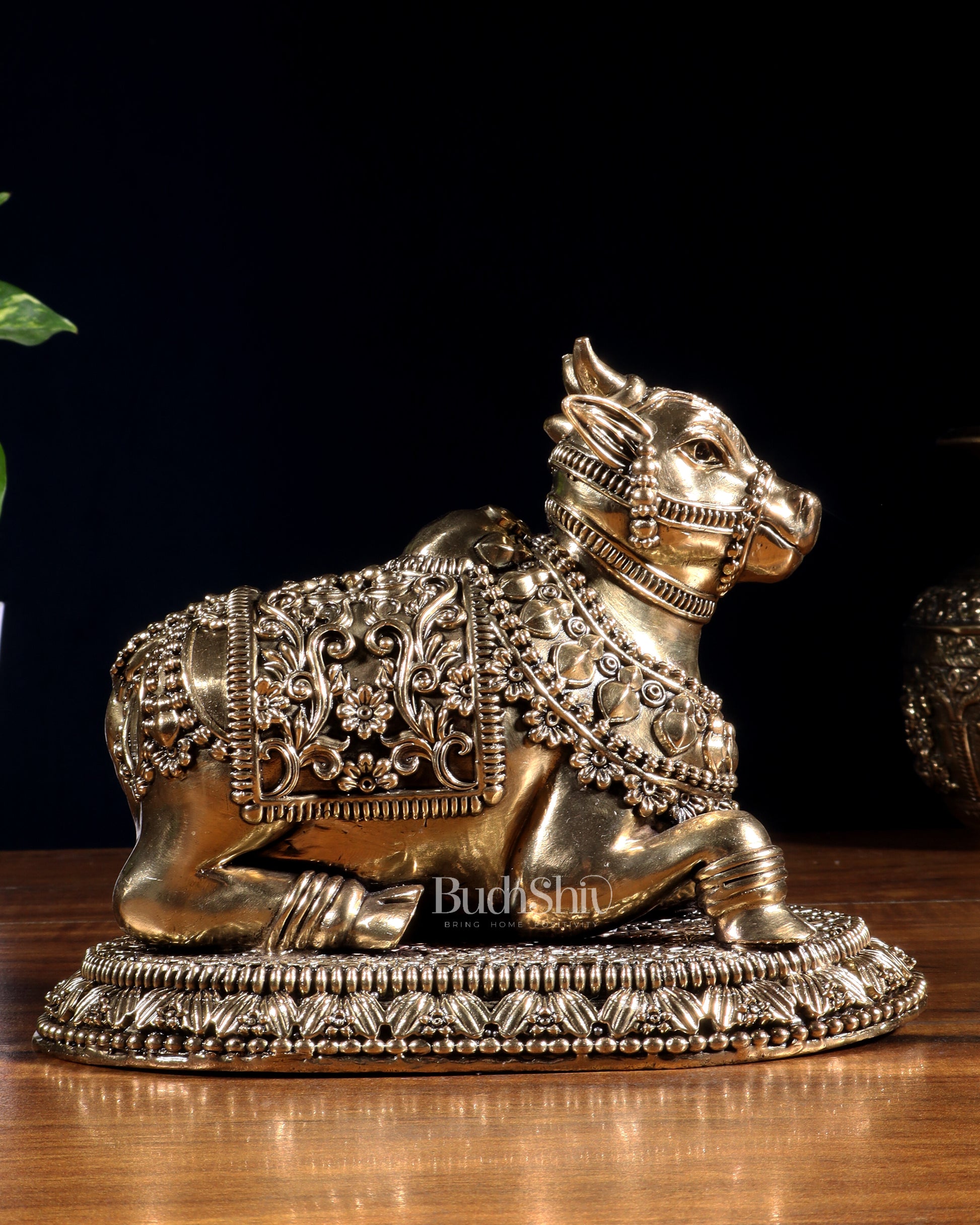 Brass Superfine Intricate Nandi Idol | Two Sizes Available | Temple Decor | Premium Finish