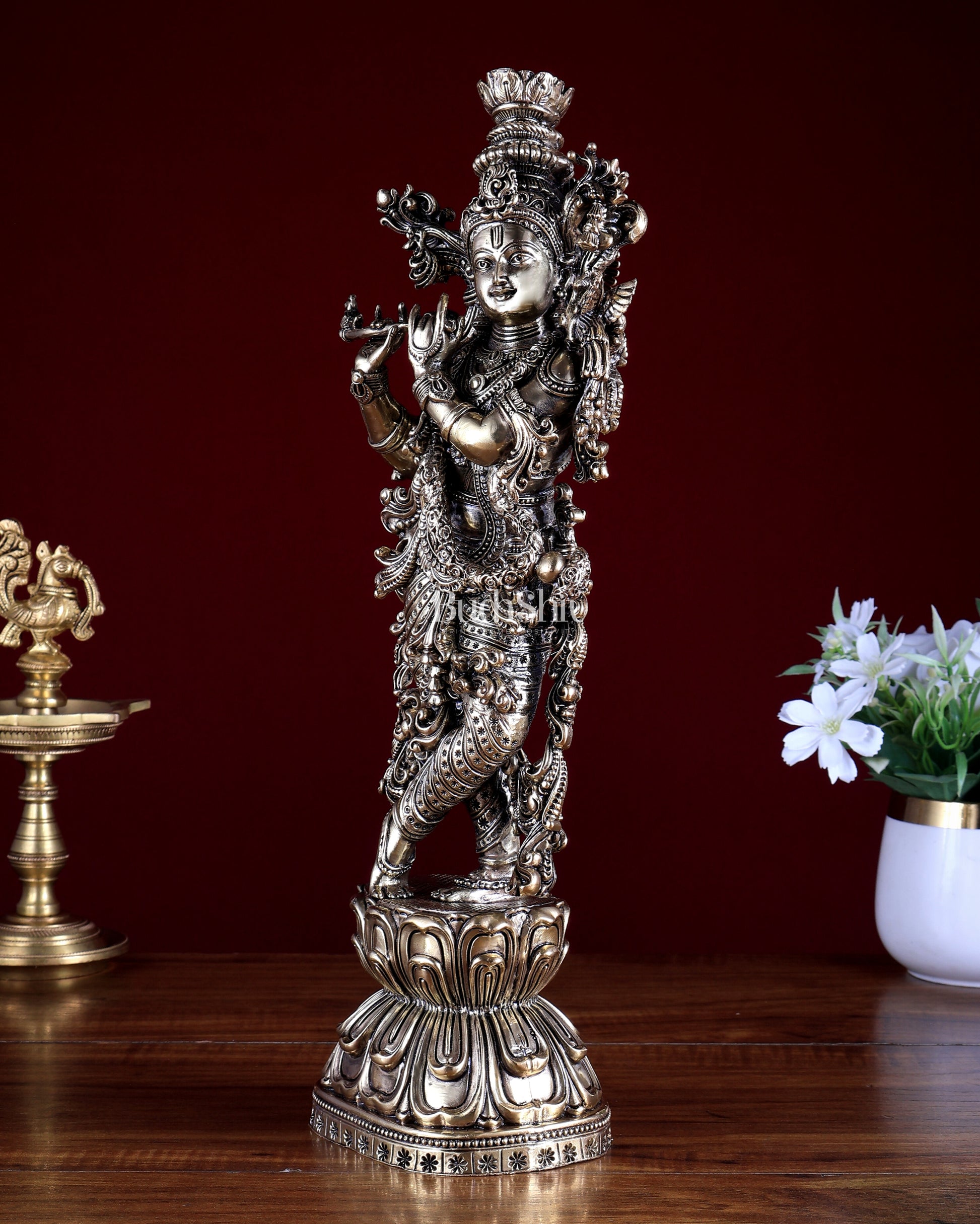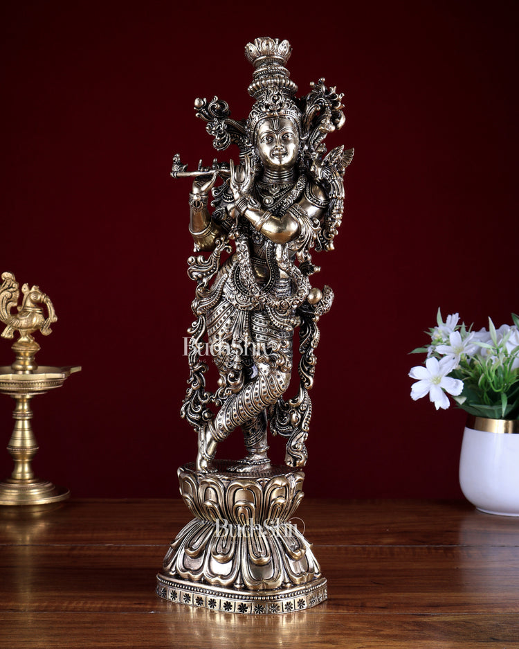 Brass Superfine Lord Krishna Idol | Intricately Handcrafted Divine Sculpture 15 inch (38 cm)