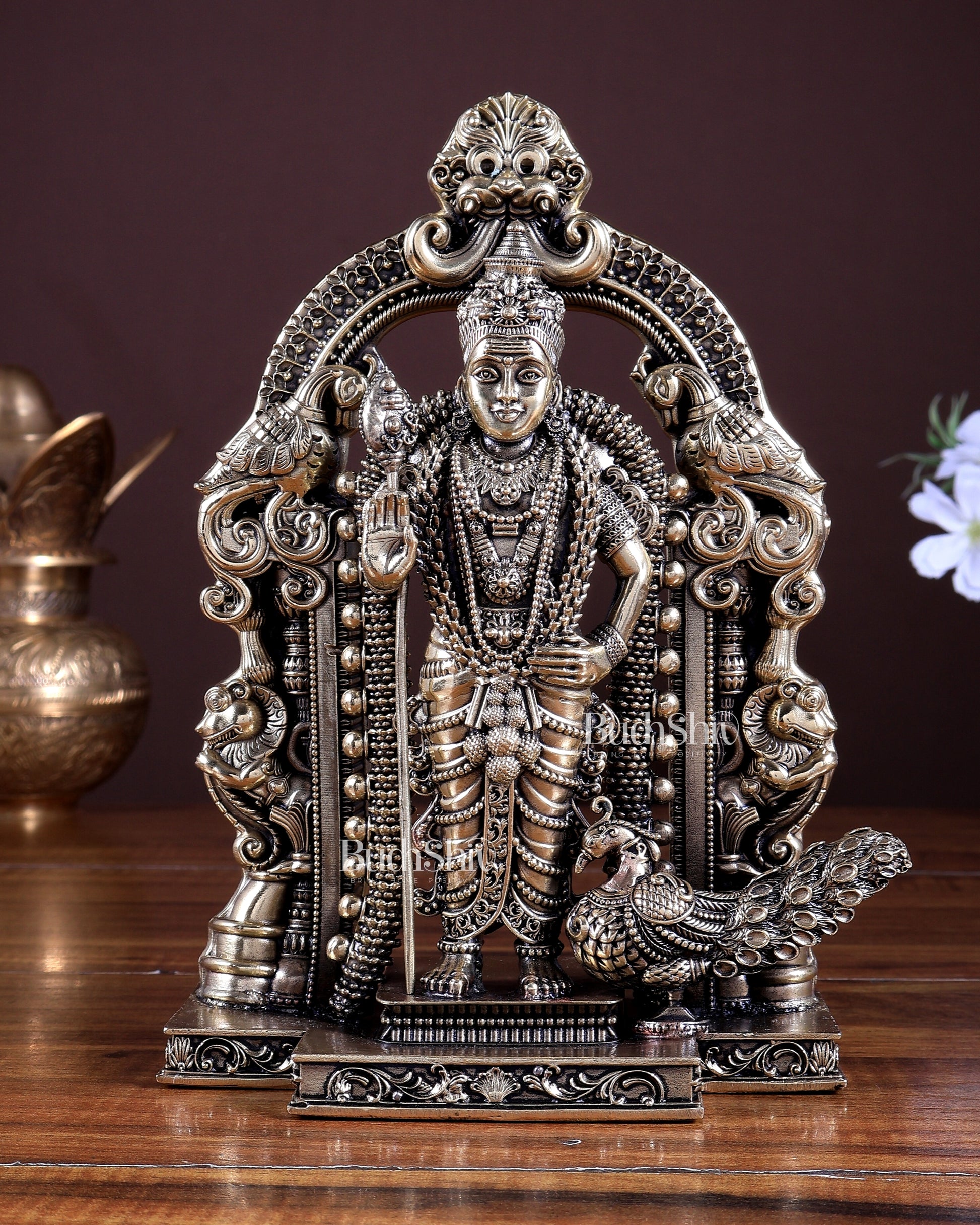 Brass Superfine Murugan Swamy Idol | Divine Handcrafted Kartikeya Murti (8 Inch)