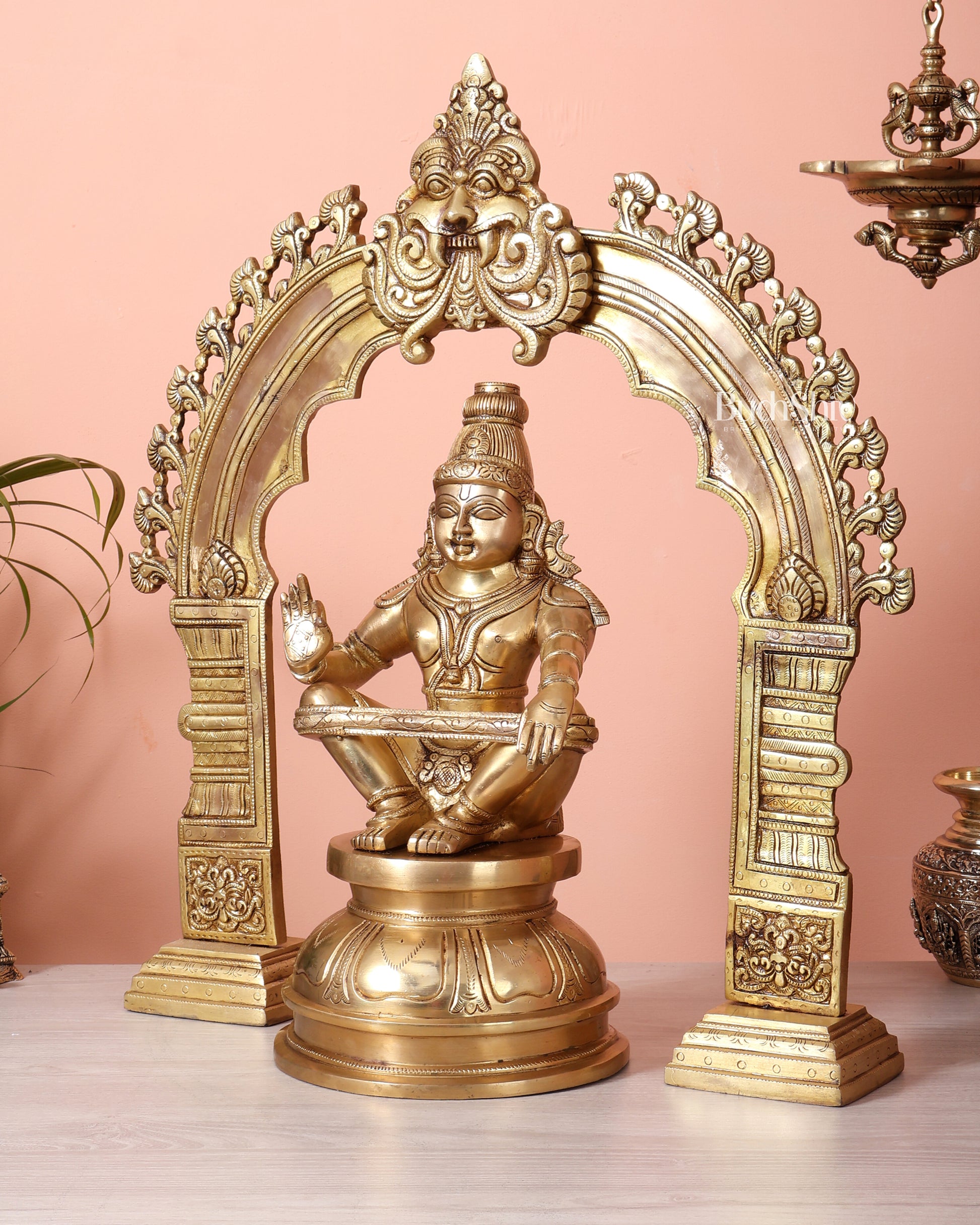 Brass Superfine Swamiye Saravana Ayyappa Statue with Prabhavali Arch 21.5 inch