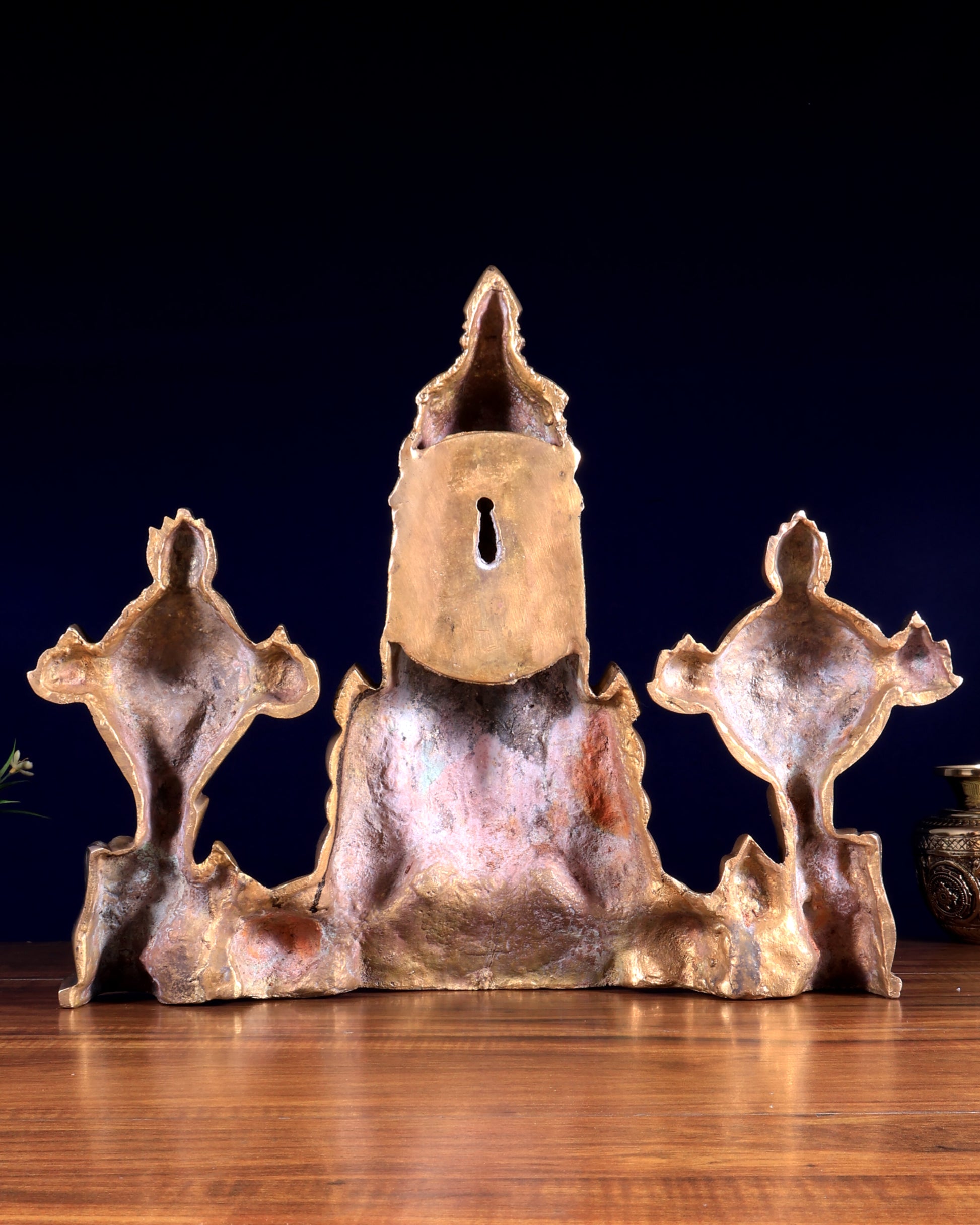 Enhance your space with the divine presence of Lord Venkateshwara, also known as Perumal and Tirupati Balaji, with this exquisite brass wall hanging. Finely handcrafted by artisans in Southern India, this piece is carefully carved in superfine brass with utmost love and devotion. Measuring 15 inches in height, 19.5 inches in width, and 3.5 inches in depth, and weighing 11 kgs, this marvel captures the essence of the Supreme God, perfect for invoking spiritual grace and elegance in your decor.