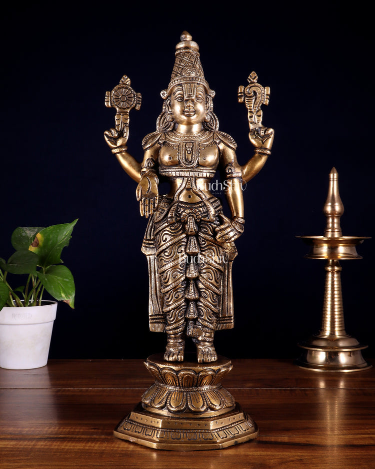 Pure Brass Lord Venkateshwara swamy statue, Brass Tirupati Balaji Idol. Standing at 16 inches, with a width of 7 inches, a depth of 5.5 inches, and a weight of 4.800 KG.