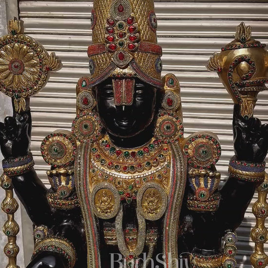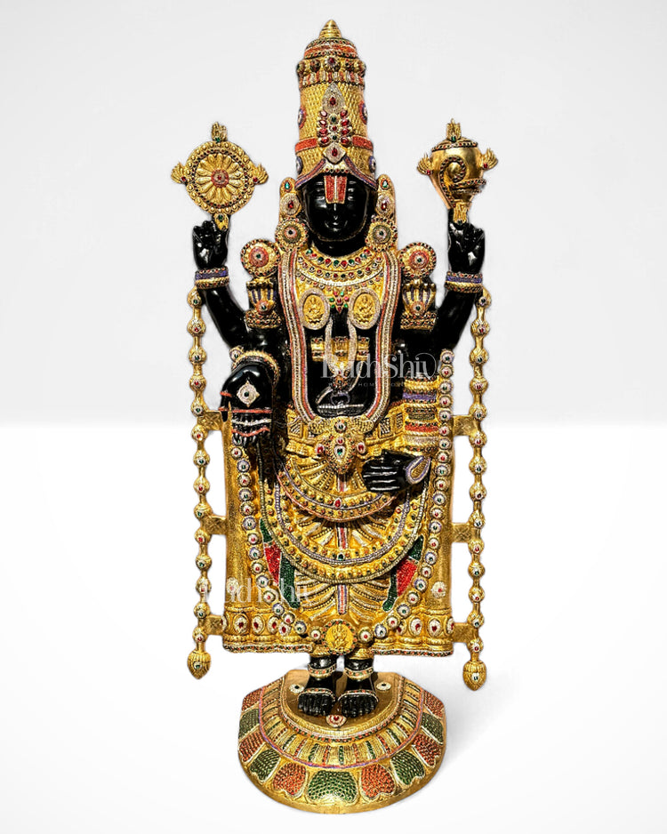 This large-format Balaji murti is crafted with traditional techniques, ensuring durability, shine, and an authentic temple-style aesthetic. Every fold of the drapery, ornament detail, and facial expression reflects master craftsmanship.