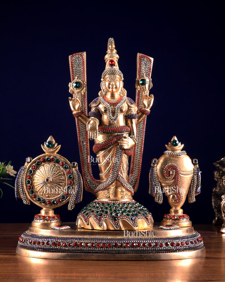 Brass Tirupati Balaji statue with Shankh Chakra | 14.5 Inch