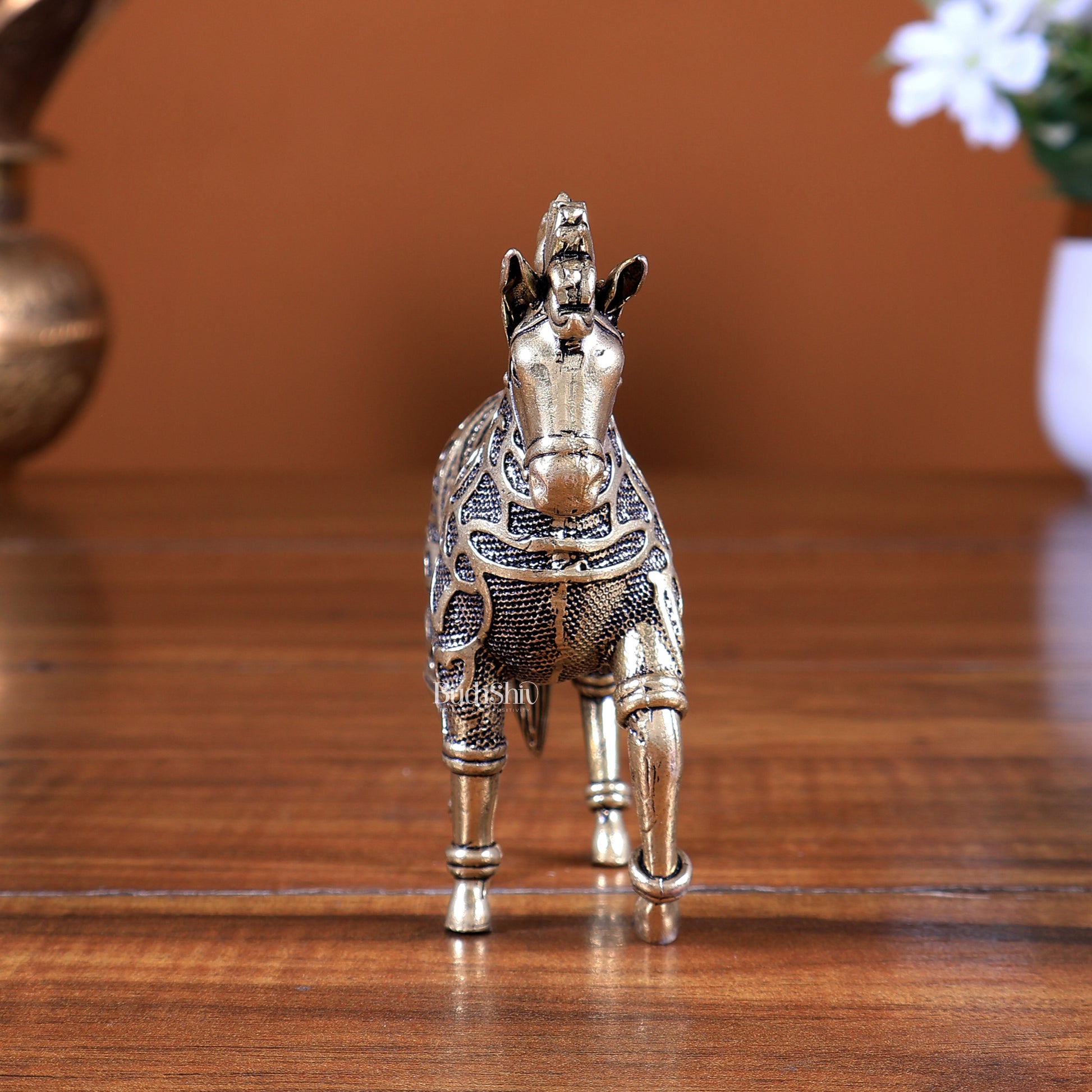 Add energy, progress, and elegance to your space with this finely crafted Brass Trotting Horse Showpiece, featuring a highly detailed mosaic design. The trotting horse symbolizes speed, success, confidence, and forward movement, making it an excellent choice for Vastu-aligned décor and inspirational interiors.