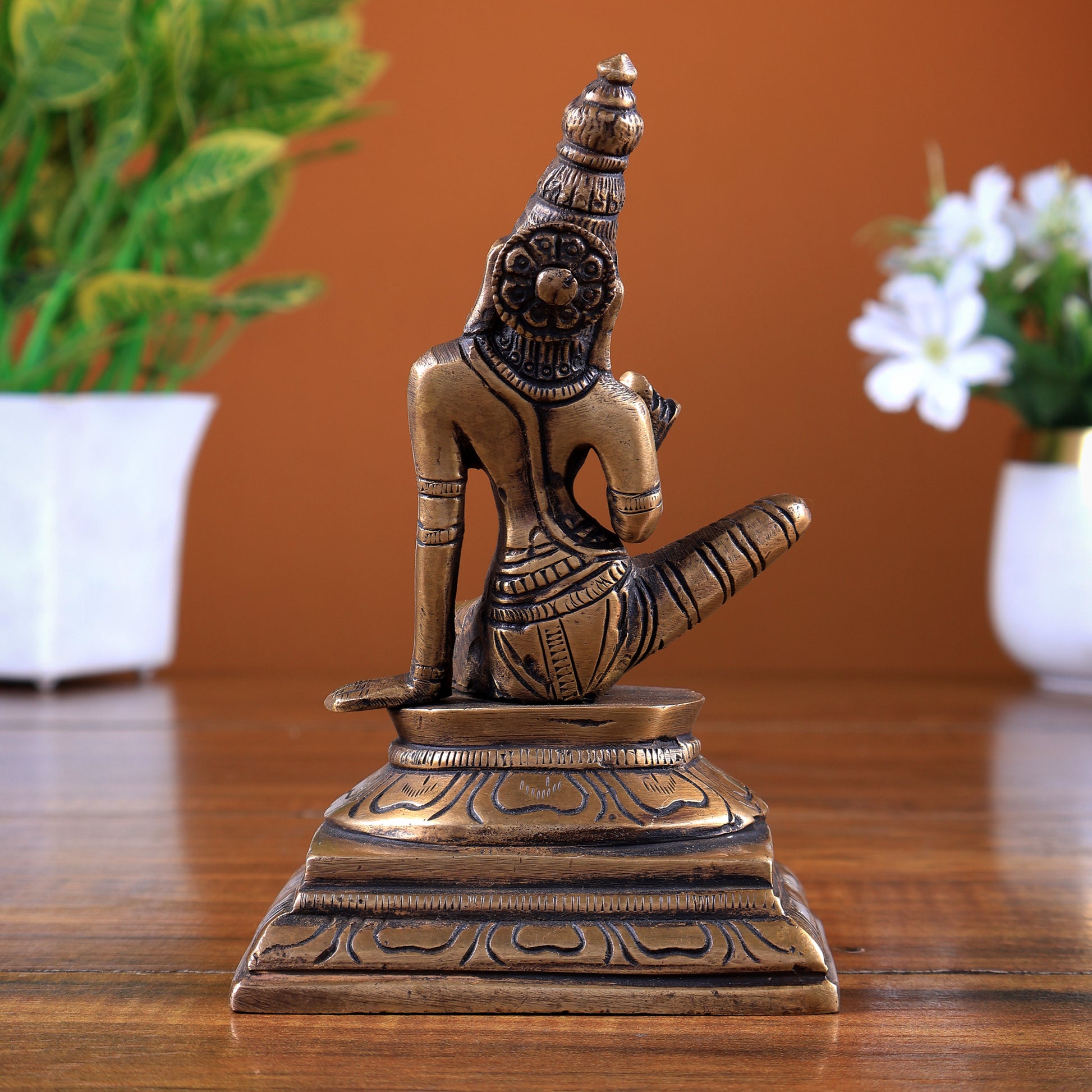 Finished in a refined antique tone, this idol carries a timeless temple-inspired appeal, making it ideal for home mandirs, pooja spaces, and sacred décor.