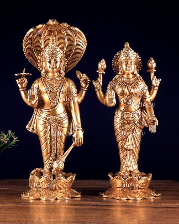 Brass Vishnu and Lakshmi idol pair golden 18"