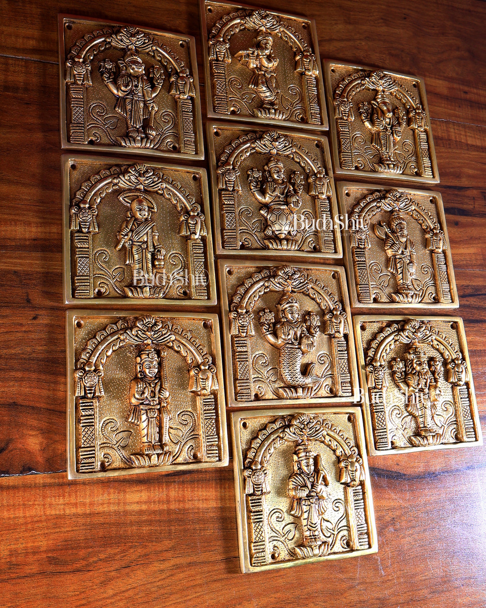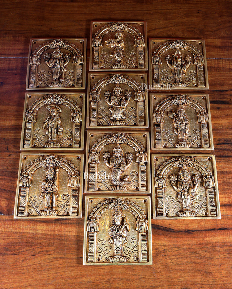 Brass Vishnu Dashavatar Wall Hanging Plates – Superfine Quality (Set) 6"