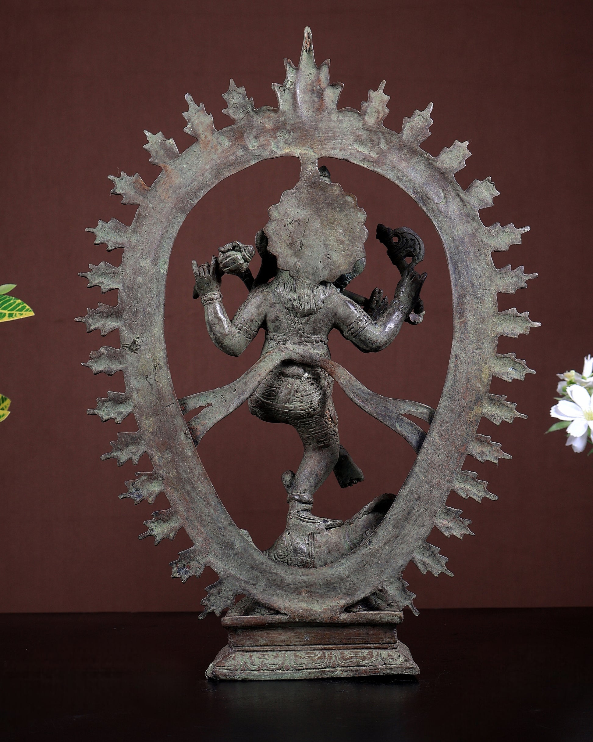 Bronze Dancing Ganesha Nataraja Playing Flute Arch – Patina Finish 13 inch