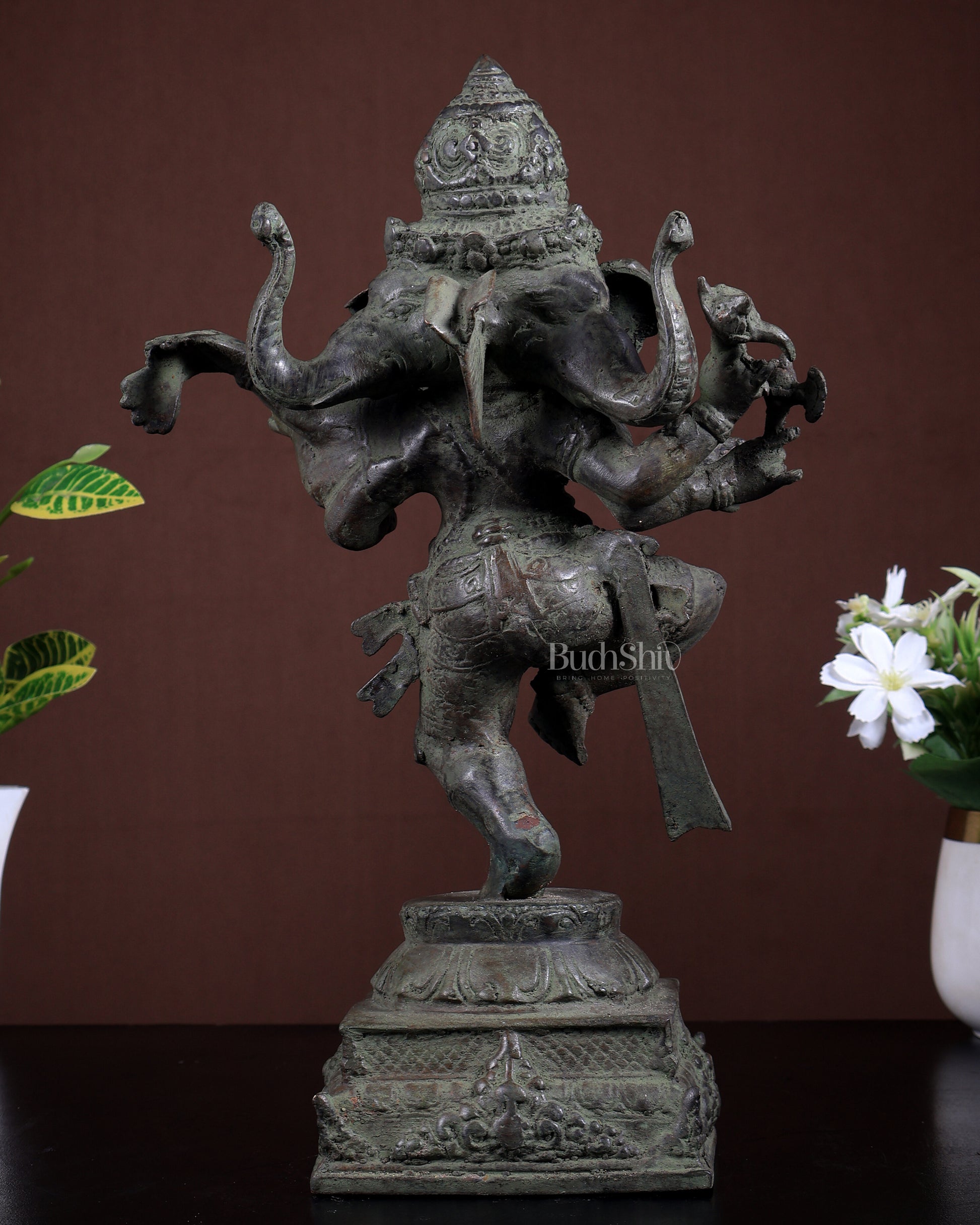 Bronze Dancing Ganesha Statue – Three-Faced (Trimukhi) Indonesian Depiction 12.5 inch