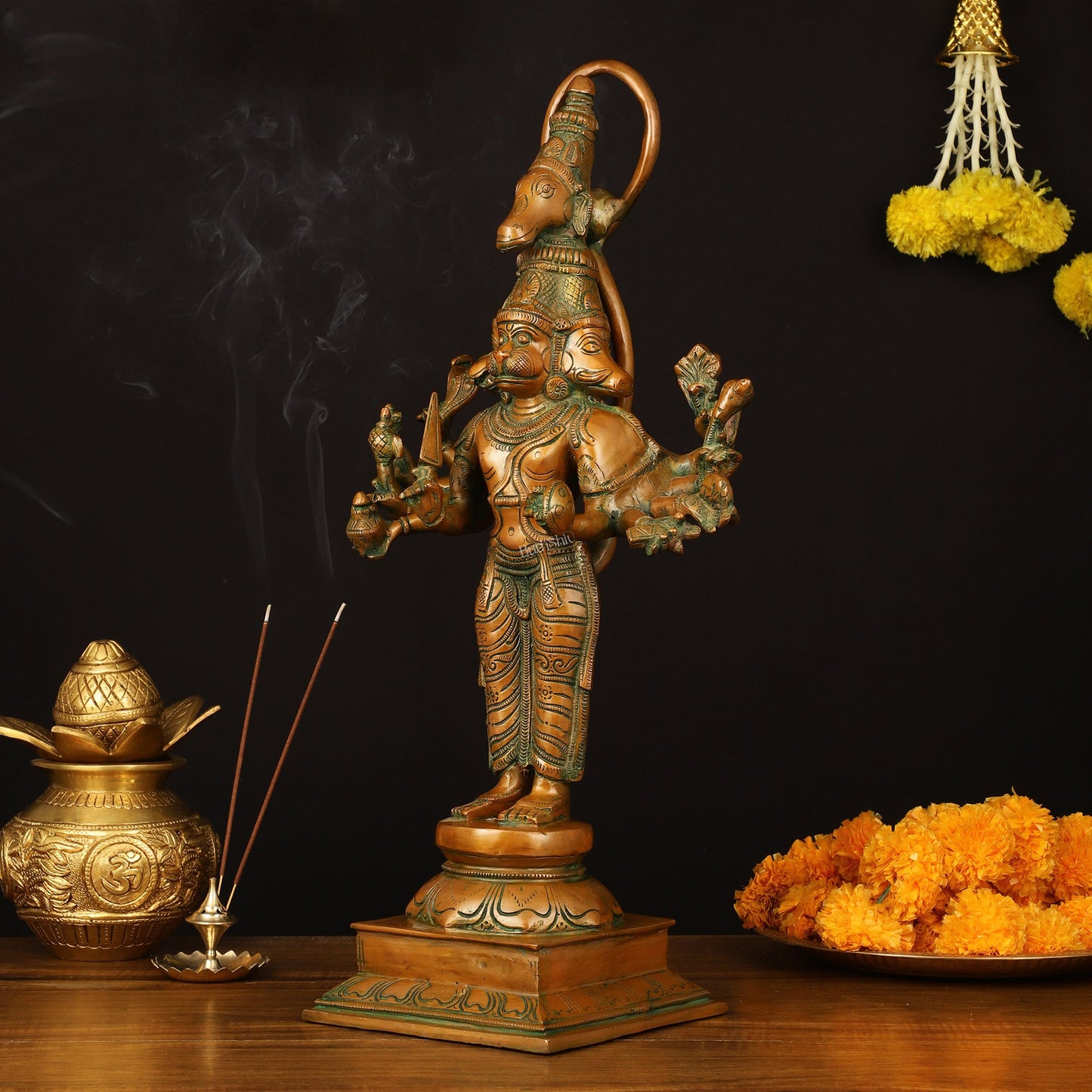 Bronze Finish Brass Lord Panchmukhi Hanuman Statue - 22 Inch