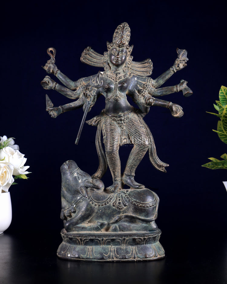 Bronze Goddess Durga Statue | Lost Wax Casting | 13"