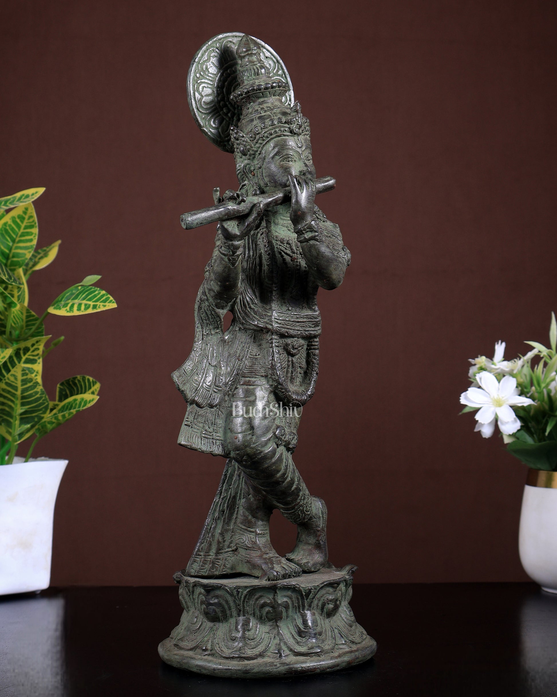 Bronze Krishna Statue – Antique Patina Indonesian Style 13.5 inch