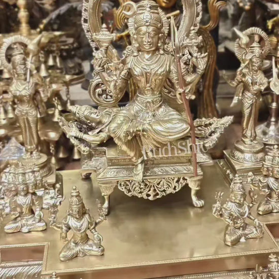 Crafted using the ancient lost-wax technique, this sculpture is a rare and intricate representation of the complete Sri Vidya Darbar, with celestial beings attending the divine court of Lalita Devi.