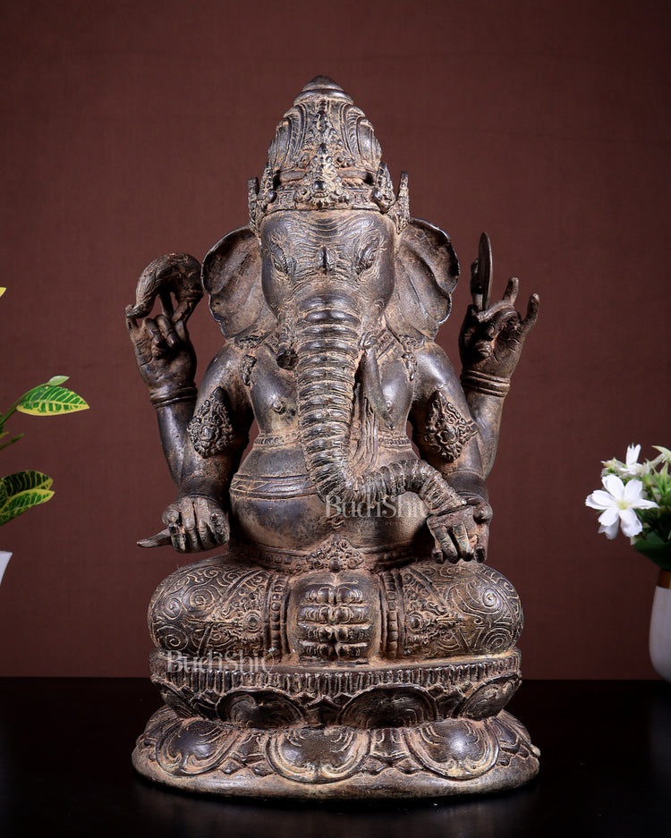 Bronze Lord Ganesha Seated Sculpture | 15 Inch Lost Wax Casting | 7 Kg Museum Style Idol