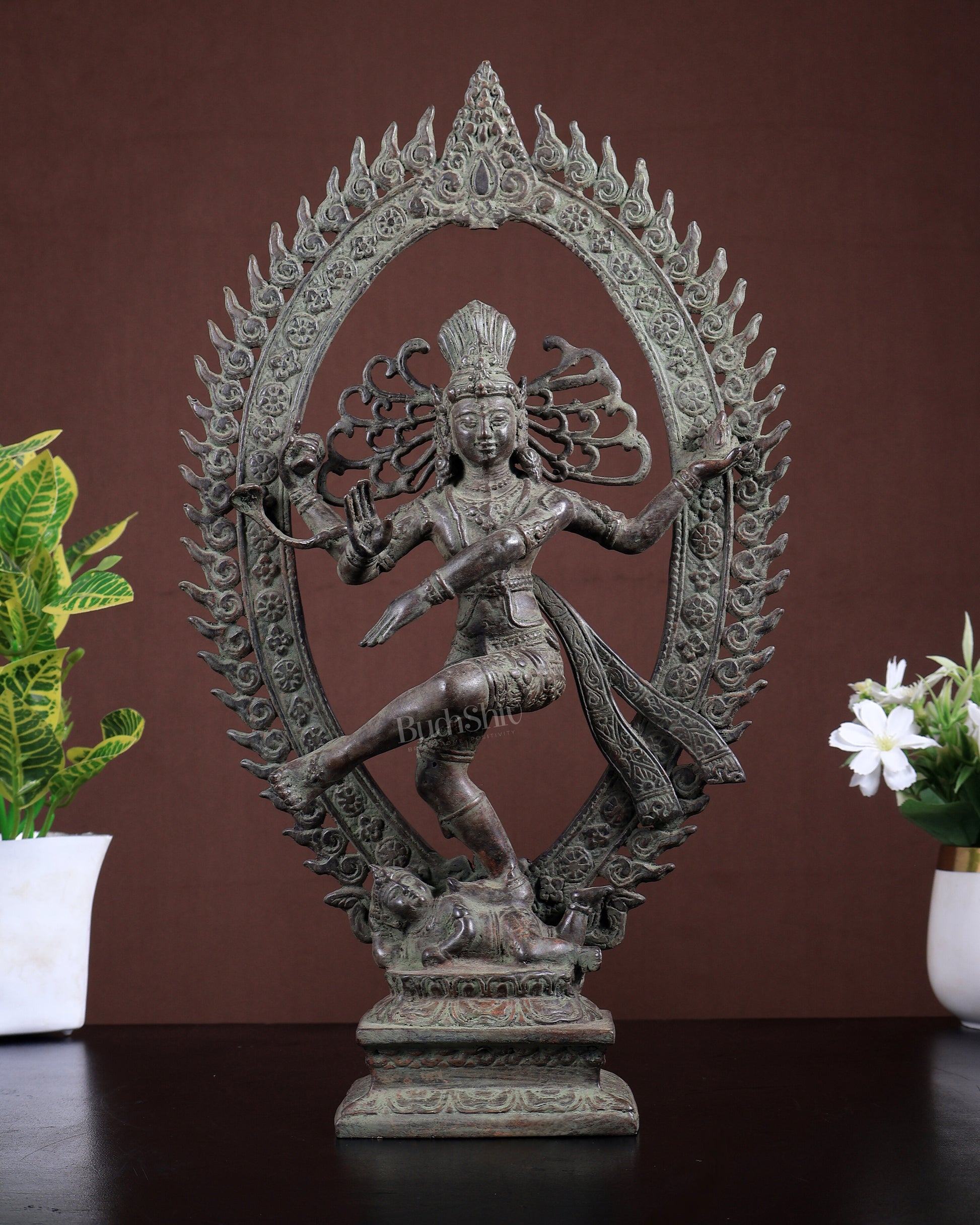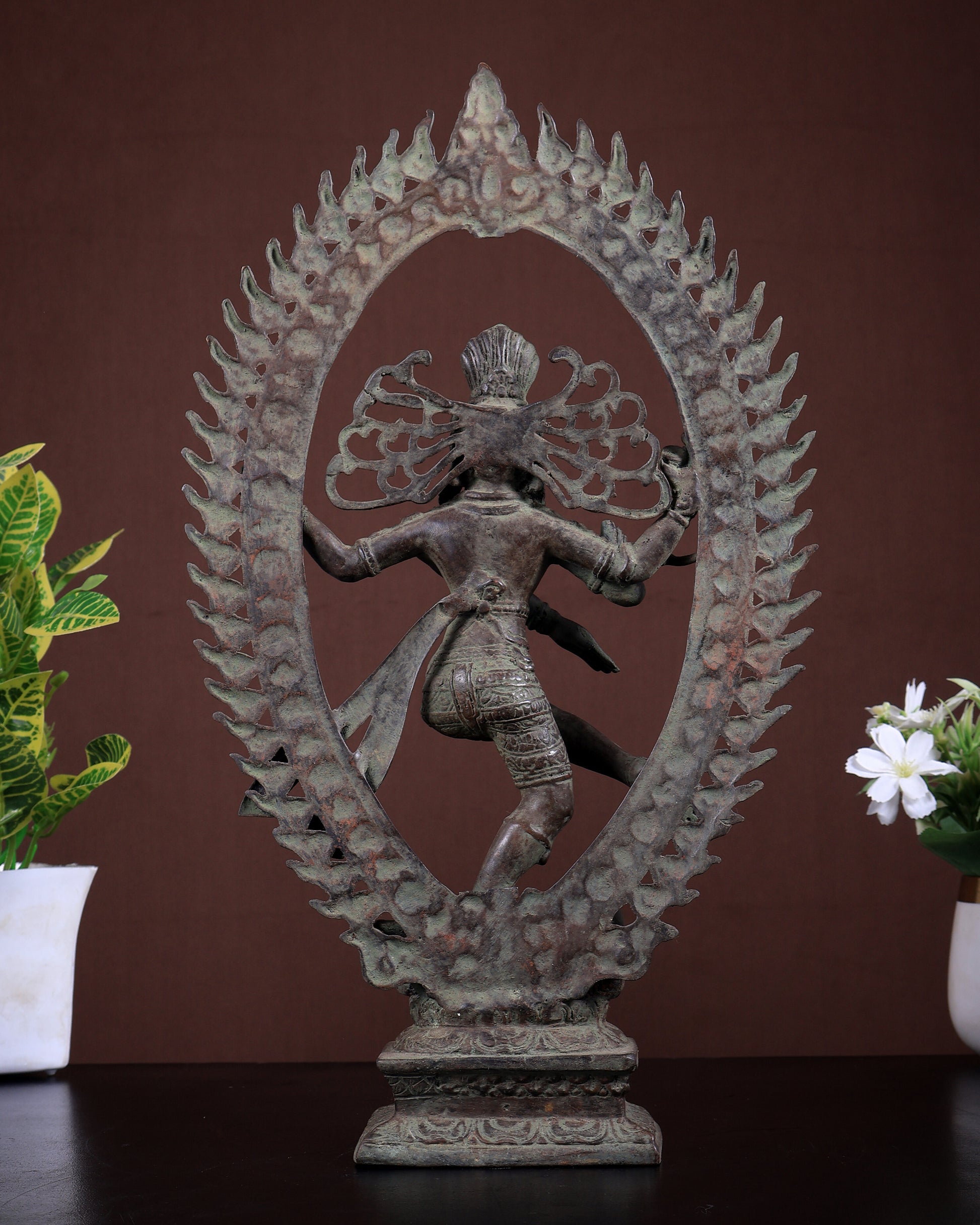 Bronze Nataraja Statue Vintage Patina | Lost Wax Dancing Shiva Idol 15.2 inch