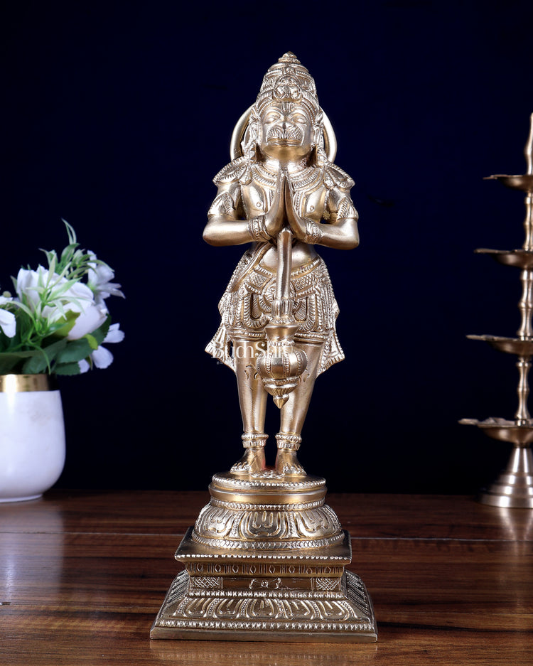 Buy Standing Hanuman statue in Namaste (Anjali Mudra). Height 9.5 inches, width 3.5 inches, depth 3.5 inches, Weight 2.2 kgs, Symbol of devotion, humility & strength. Ideal for home temple, vastu & gifting.