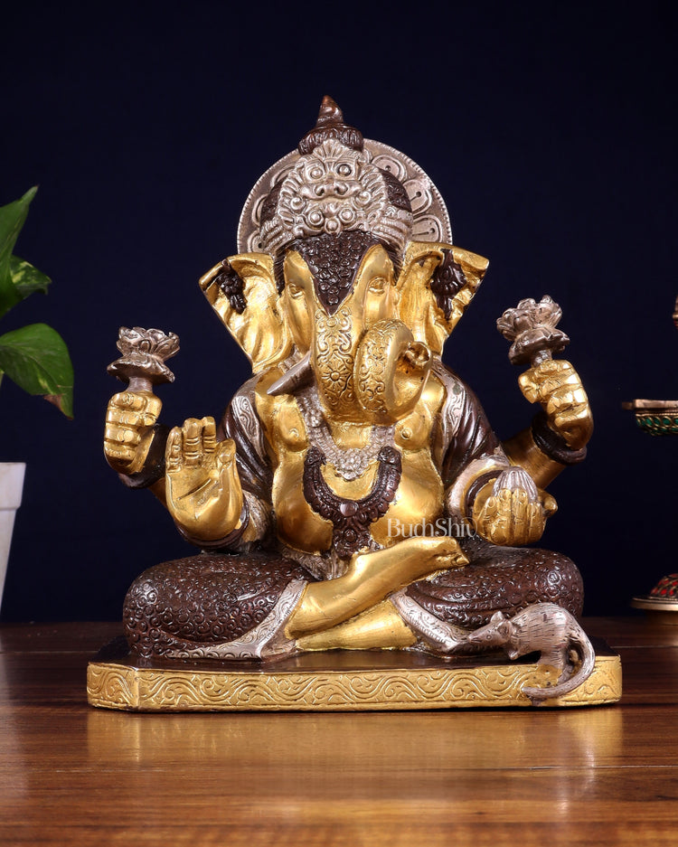 Dagdusheth Ganapati Brass Statue 9 inch three tone