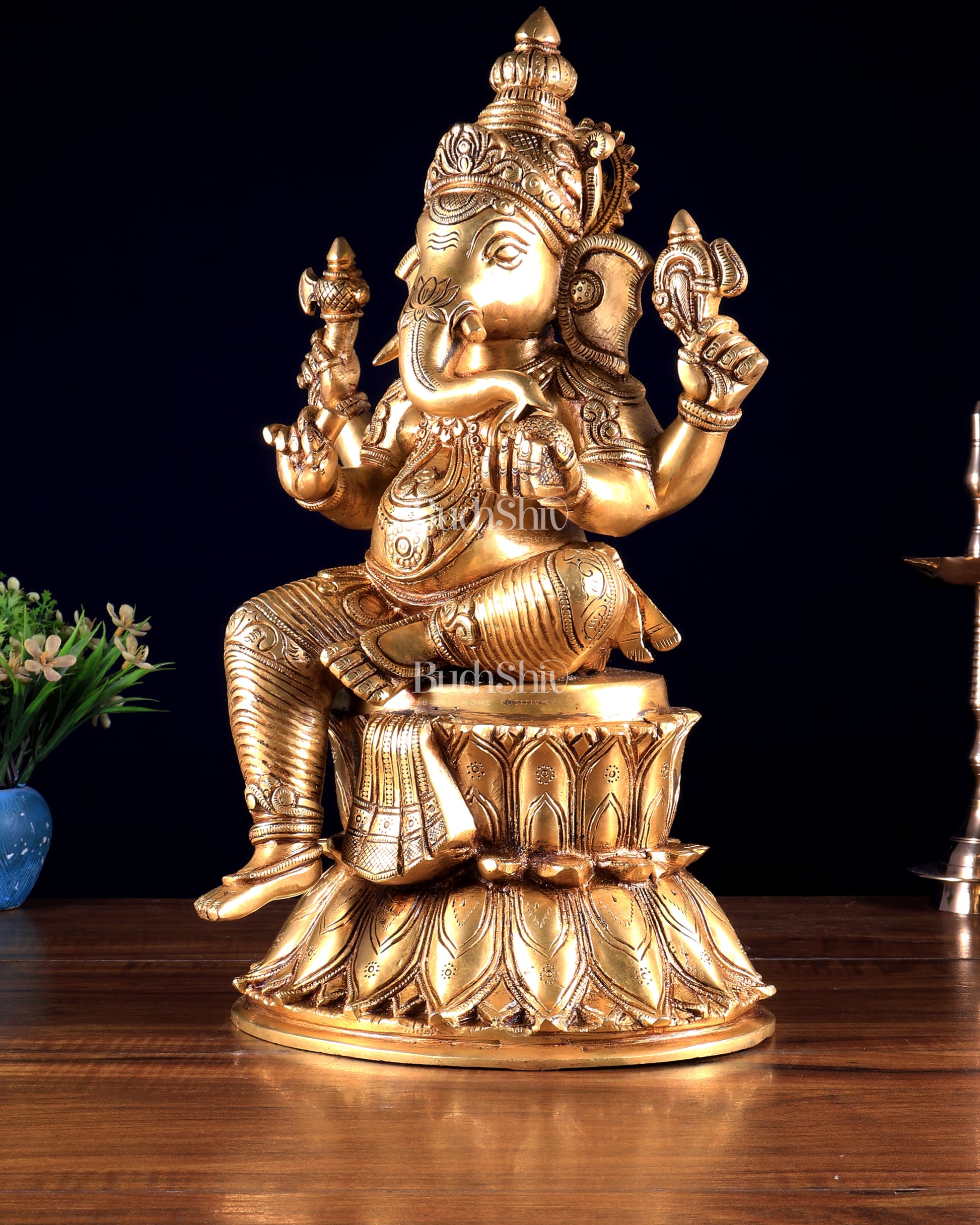 Handcrafted Brass Lord Ganesha Statue - 15" enhanced carvings