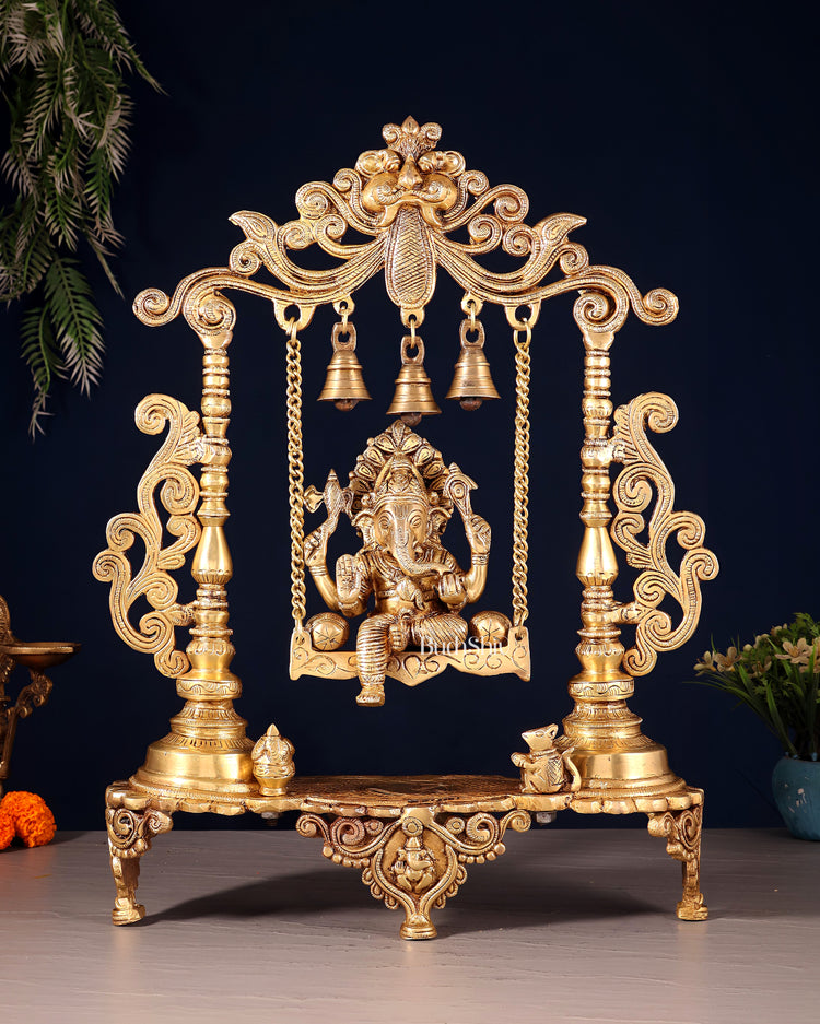 Handcrafted Ganesha on a Swing idol - Superfine Brass, 20"