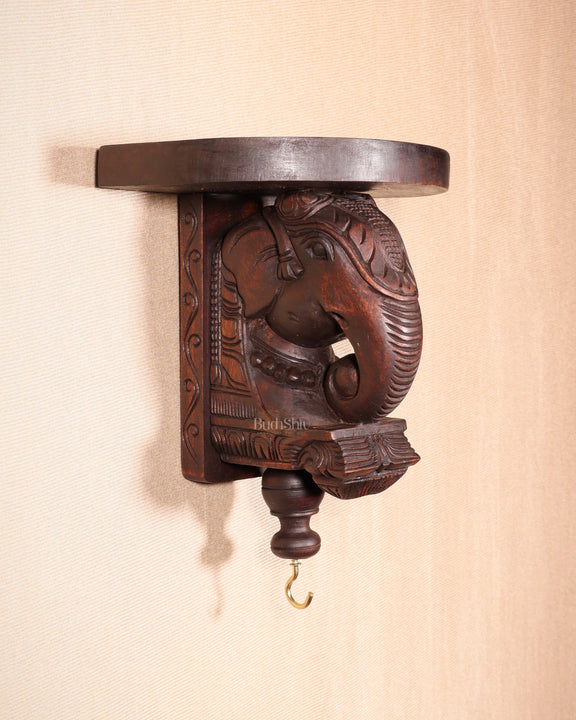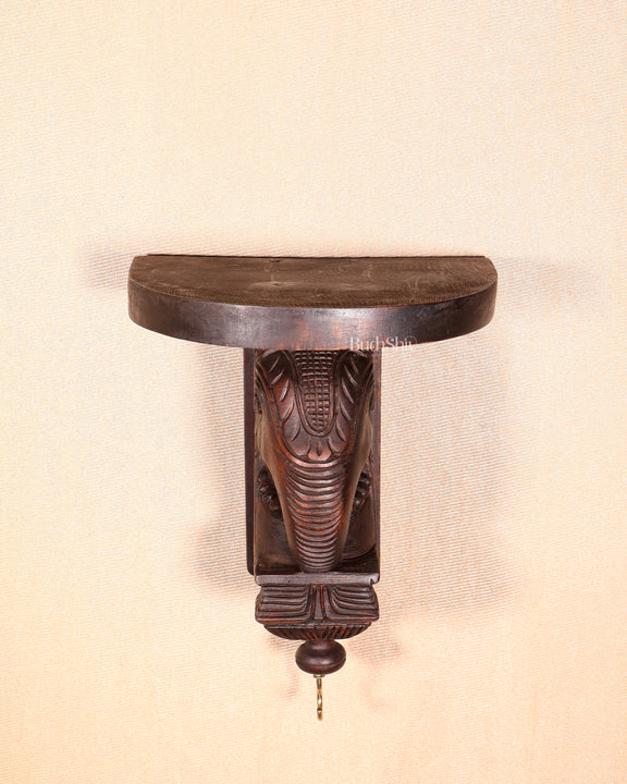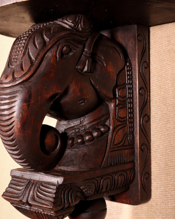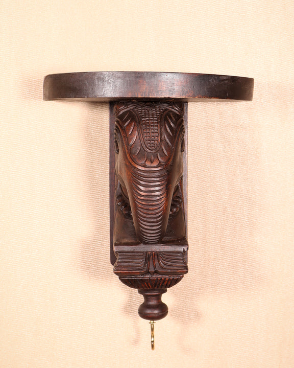 Handcrafted Wooden Elephant Wall Bracket with Shelf & Brass Hook – Traditional Décor 11"